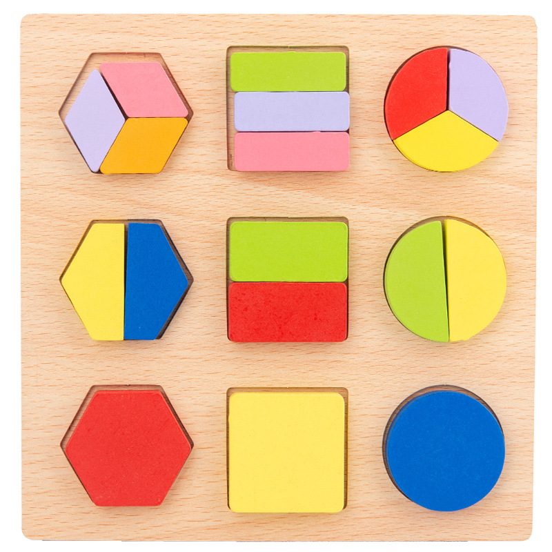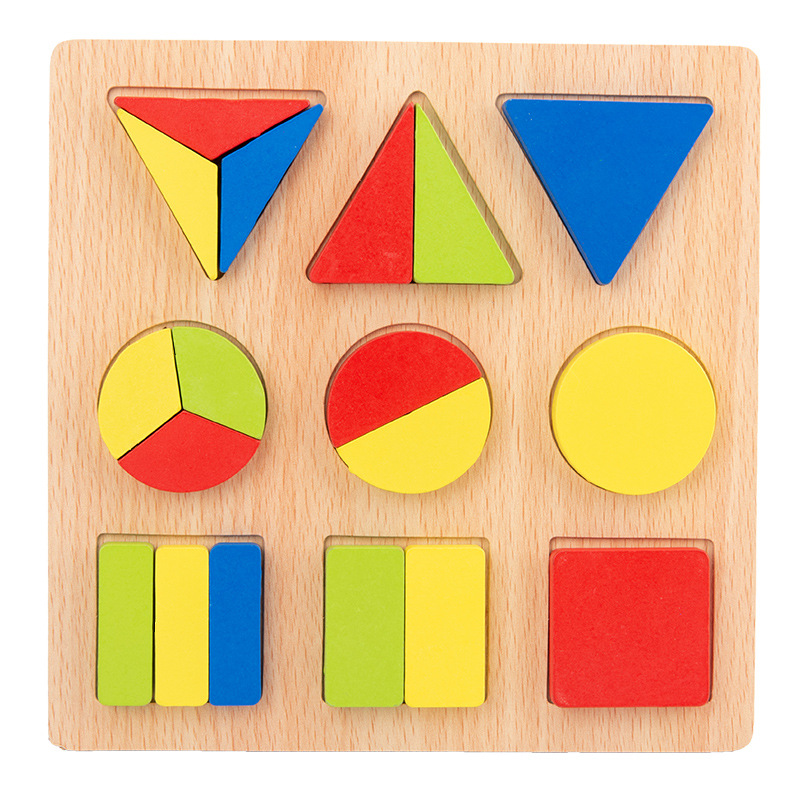 몬테소리 모양 맞추기 장난감 1-2-3세 유아 조기 교육 기하학적 등분 패널 어린이 나무 퍼즐 교육용스토어 가기