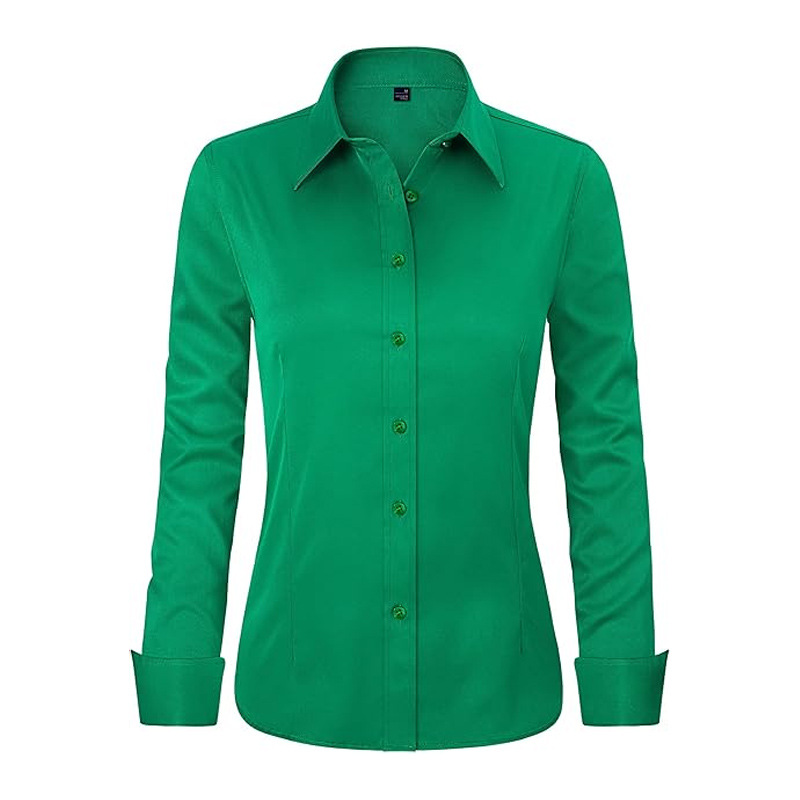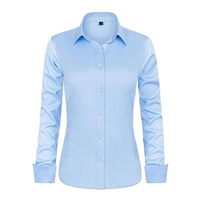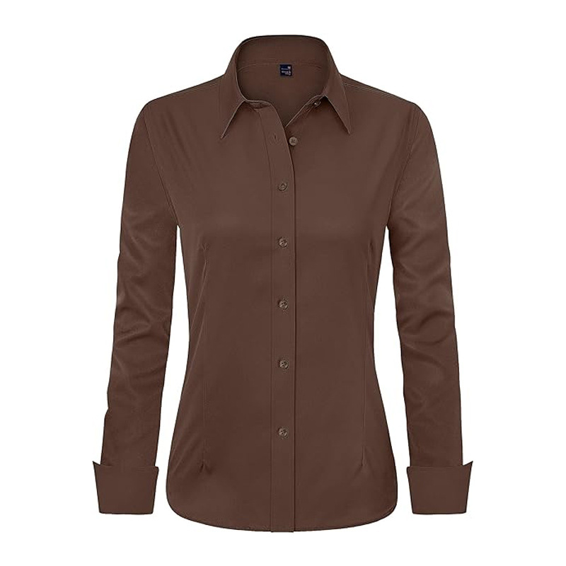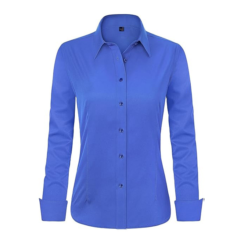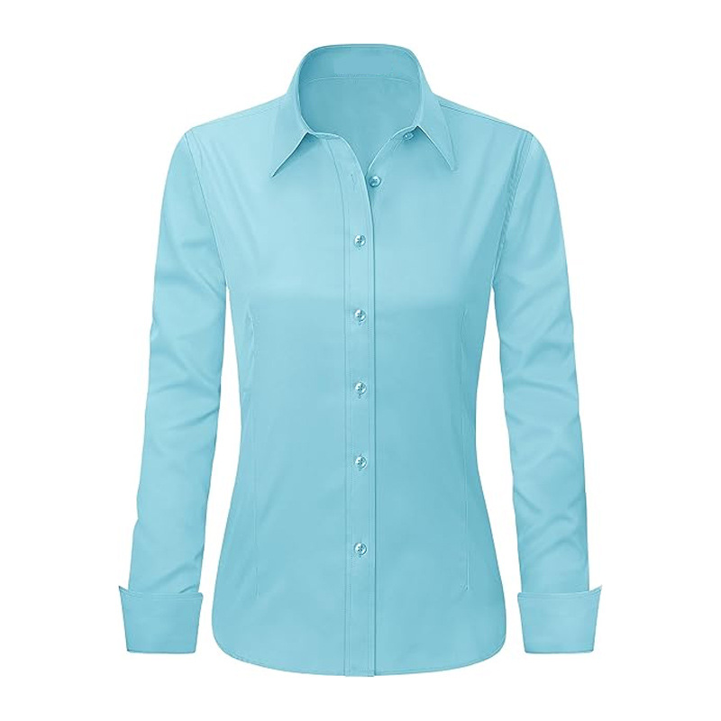 아마존 폭발 여성의 스트레치 다림질 셔츠 긴 소매 처리 샘플 처리 원피스 통근 셔츠스토어 가기