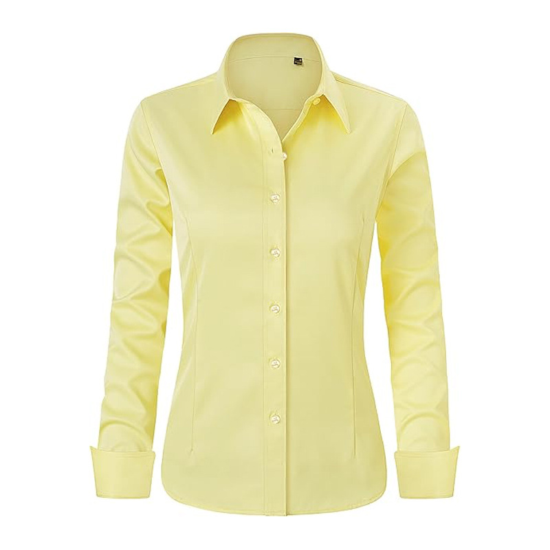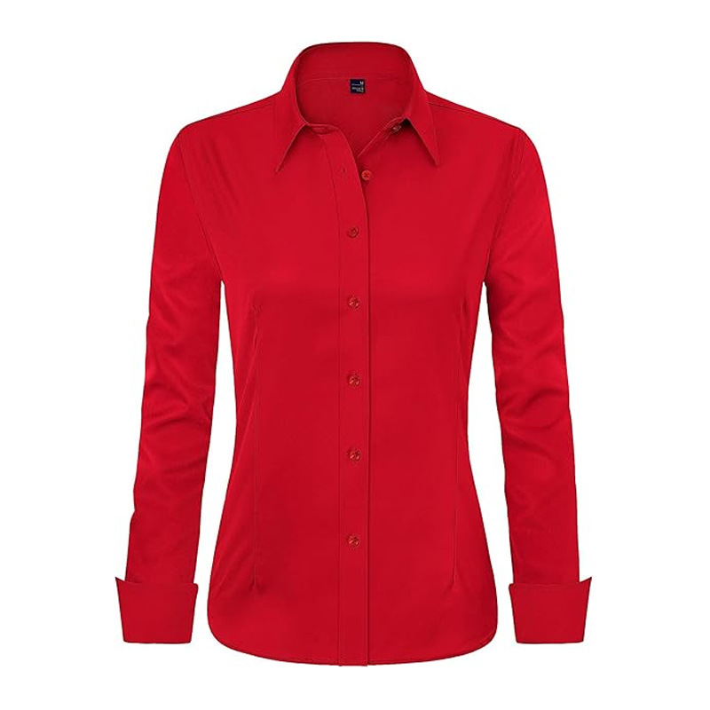 아마존 폭발 여성의 스트레치 다림질 셔츠 긴 소매 처리 샘플 처리 원피스 통근 셔츠