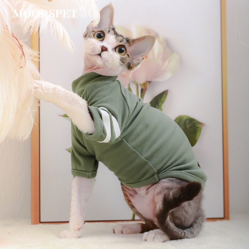 MOORSPET 애완 동물 트렌디베이스 털이없는 독일 고양이 옷 캐주얼 스포츠 탄성 짧은 고양이 두 다리 옷스토어 가기