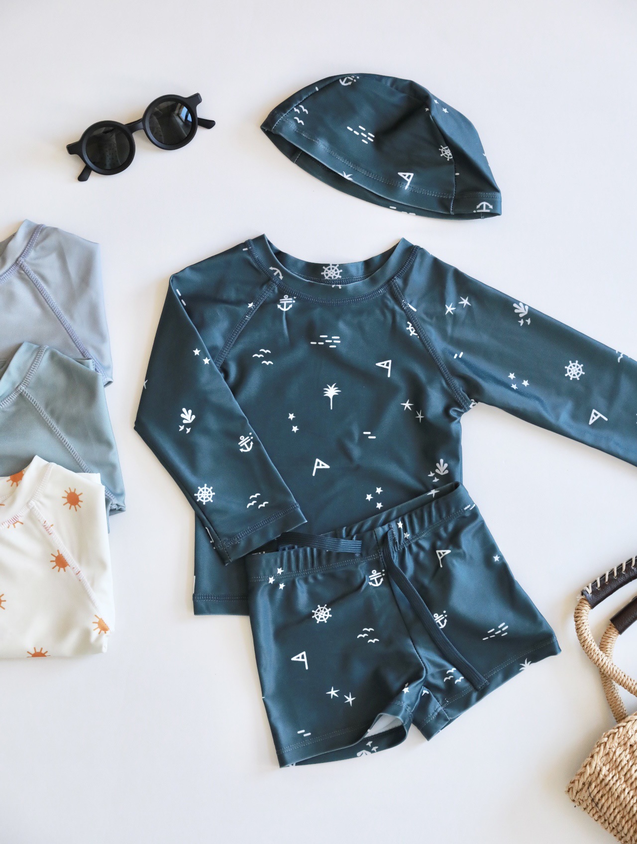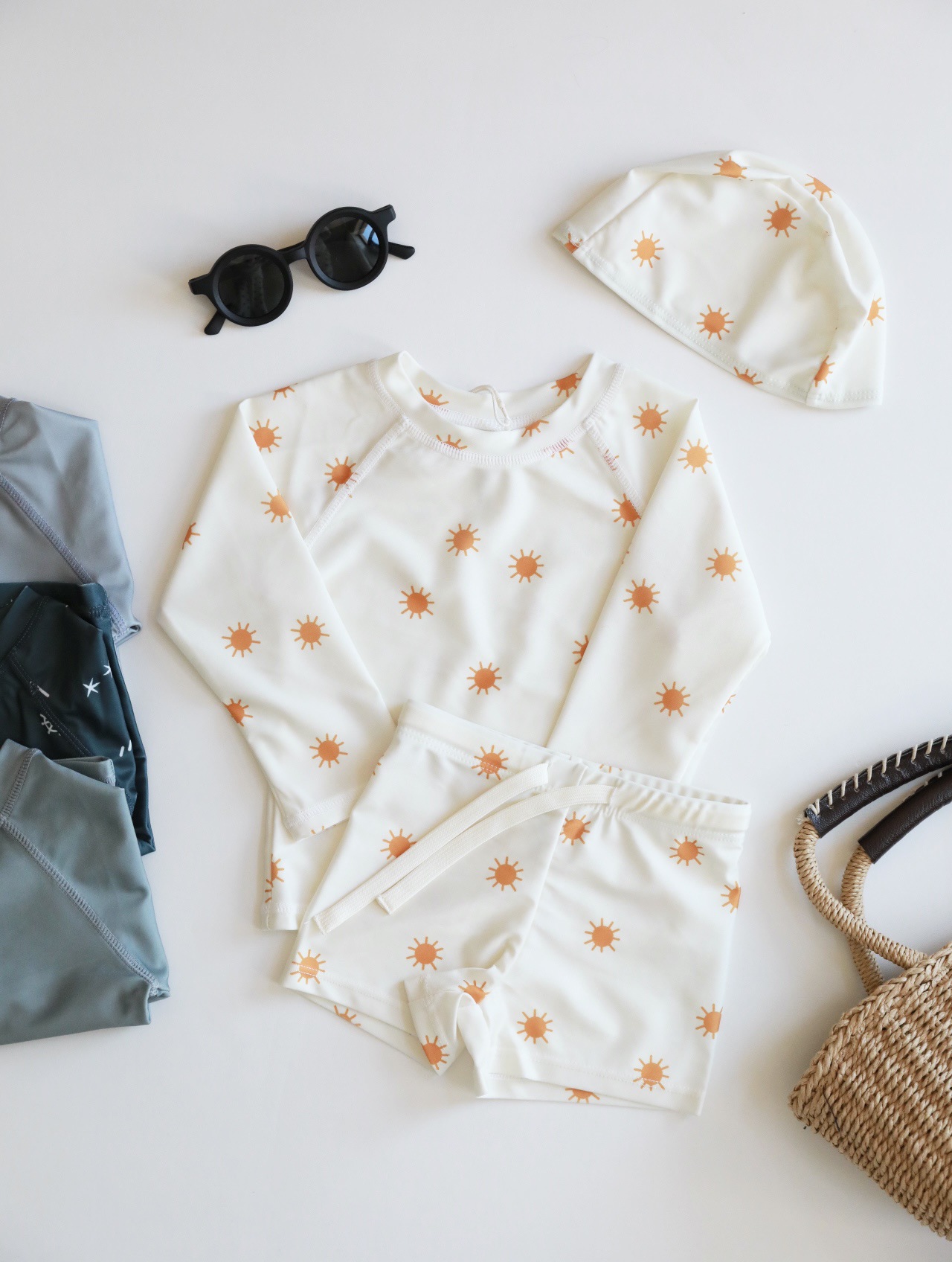 어린이 긴팔 선 스크린 분할 수영복 소년 아기 Instagram 스타일 해변 수영복 아기 귀여운 빠른 건조 수영복
