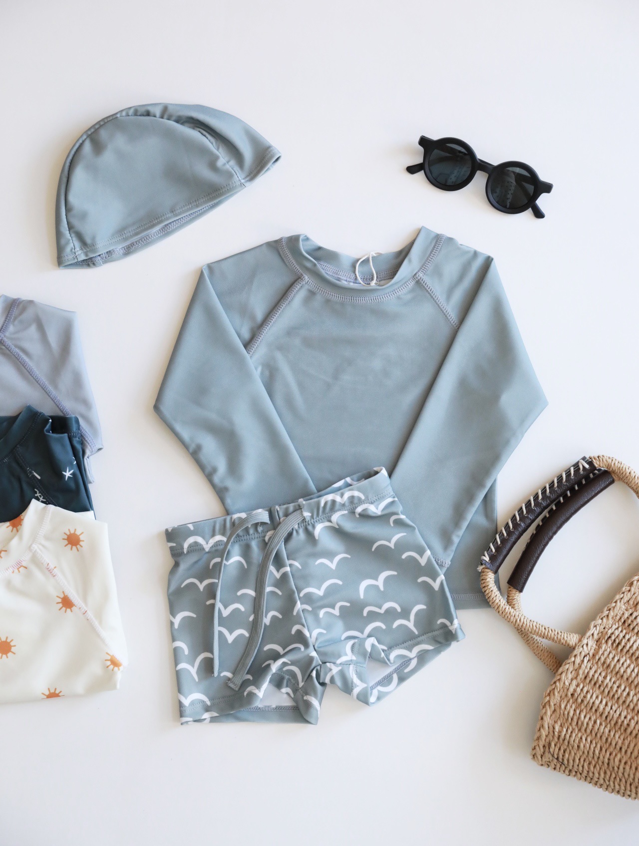 • 원피스 수영복 그레이 블루 갈매기