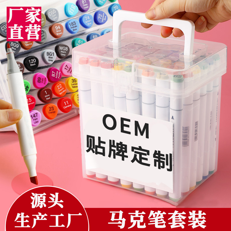 더블 헤드 유성 흰색 막대 마커 펜 세트 컬러 펜 80 색 투명 상자 어린이 미술 블랙 막대 그림 펜 도매