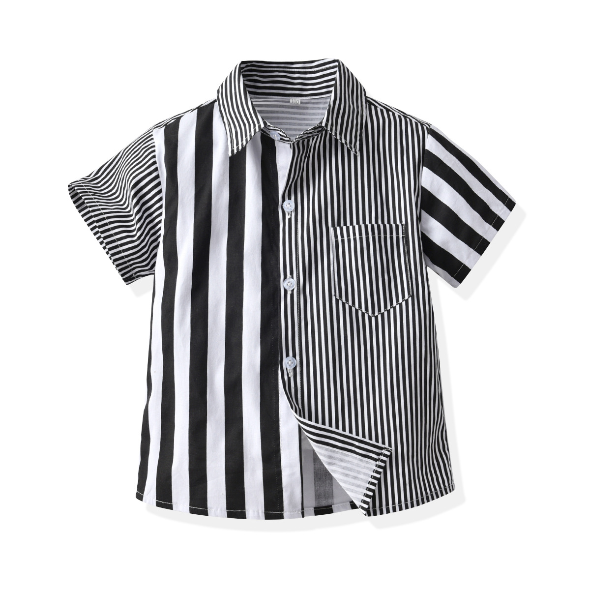 2022 소년 줄무늬 옷깃 반팔 셔츠 어린이 아기 여름 카디건 공식 캐주얼 반팔 셔츠스토어 가기