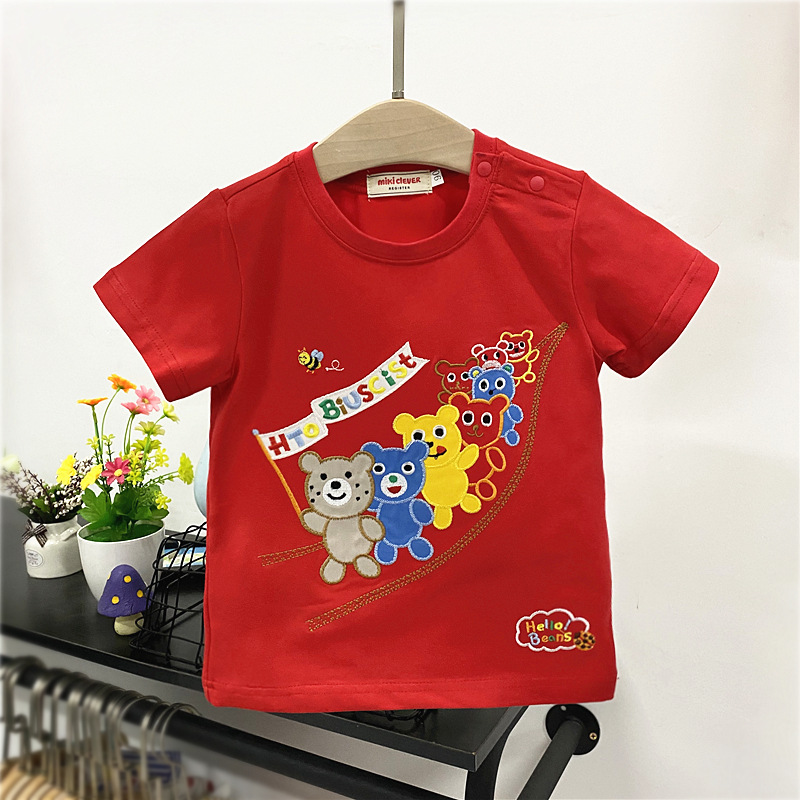 남성과 여성의 어린이 miciclever22 새로운 여름 일본식 유행 브랜드 만화 곰 대기열 반팔 티셔츠스토어 가기