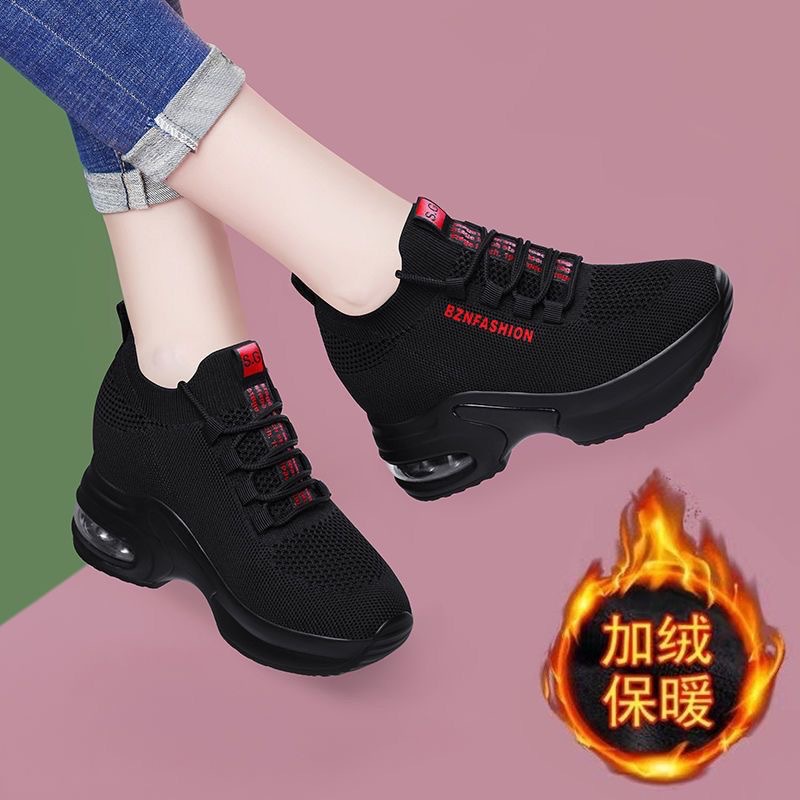 2023 겨울 새로운 내부 높이 여성 신발 모든 매치 캐주얼 어머니 신발 따뜻한 기모 방한 부드러운 단독 여성 신발
