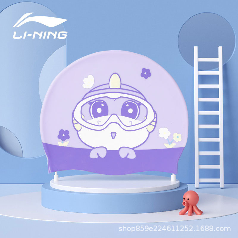 리 닝 어린이 수영 모자 여아 소년 방수 패션 실리콘 귀여운 수영 모자 여아 수영 장비