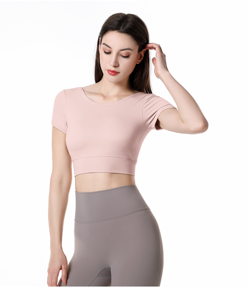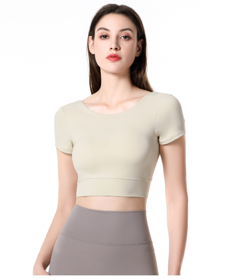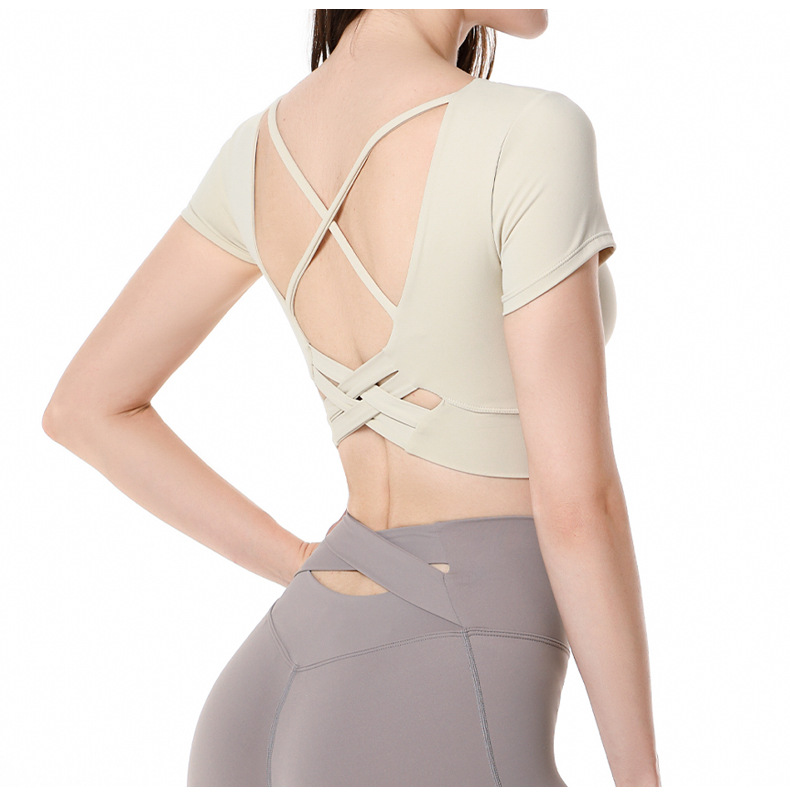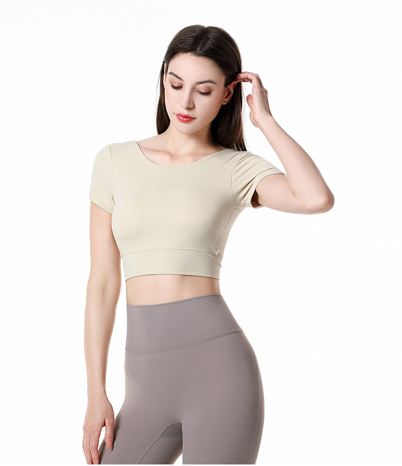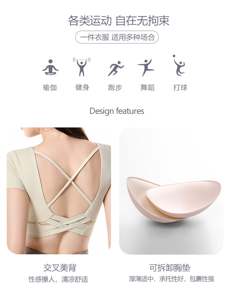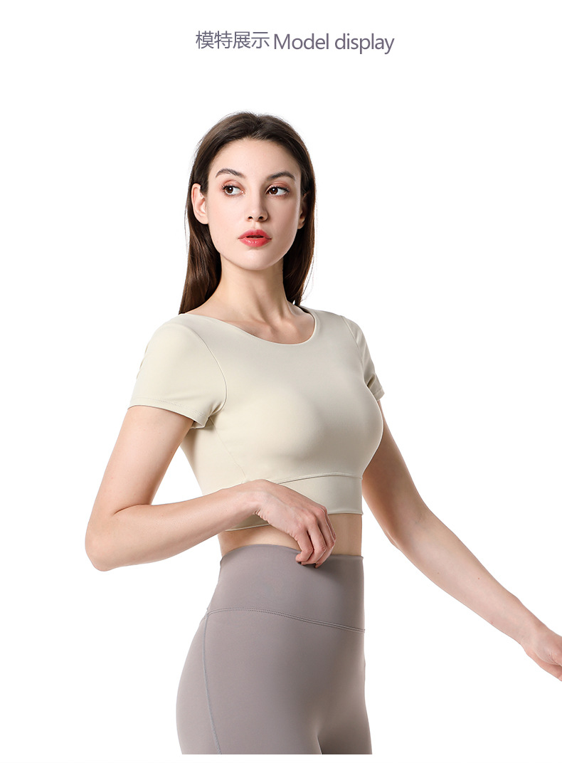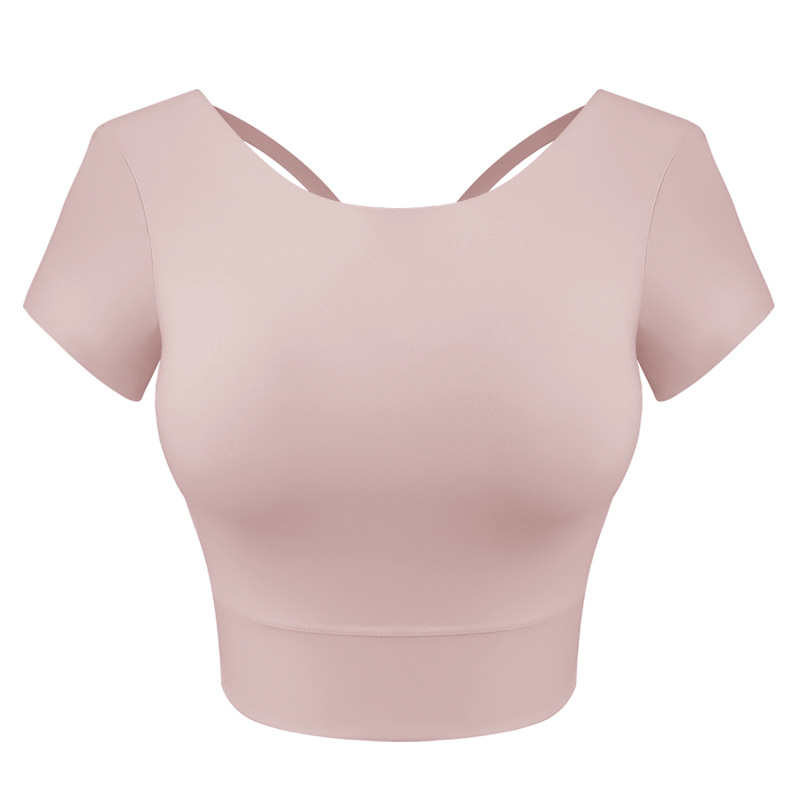 가슴 패드가 달린 반팔 요가 의류 탑 스포츠 피트니스 의류 기질 패션 여성을위한 섹시한 아름다운 백 탑스토어 가기