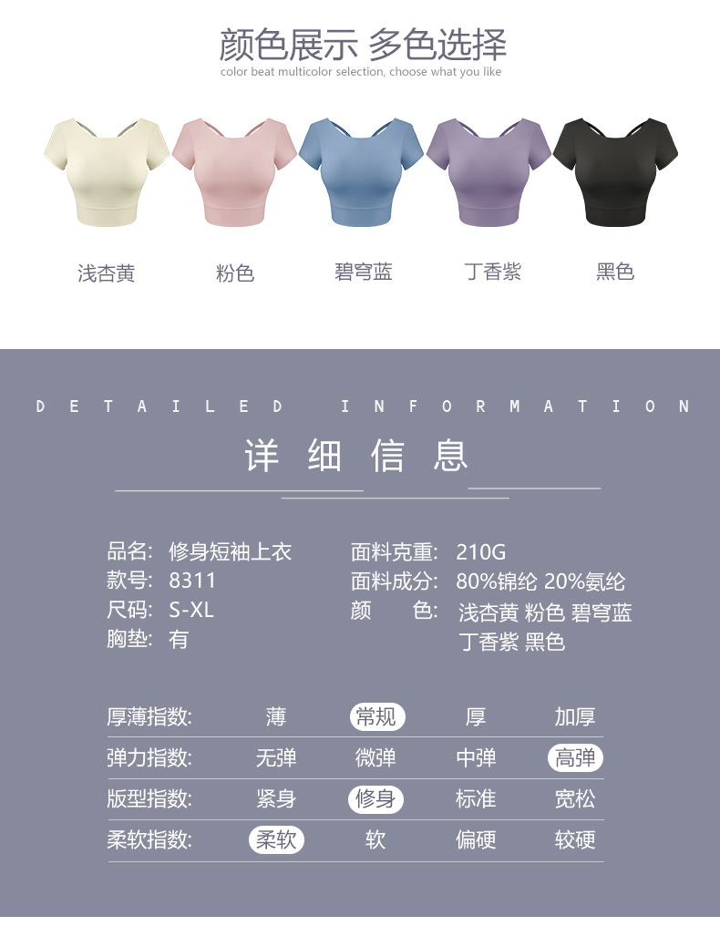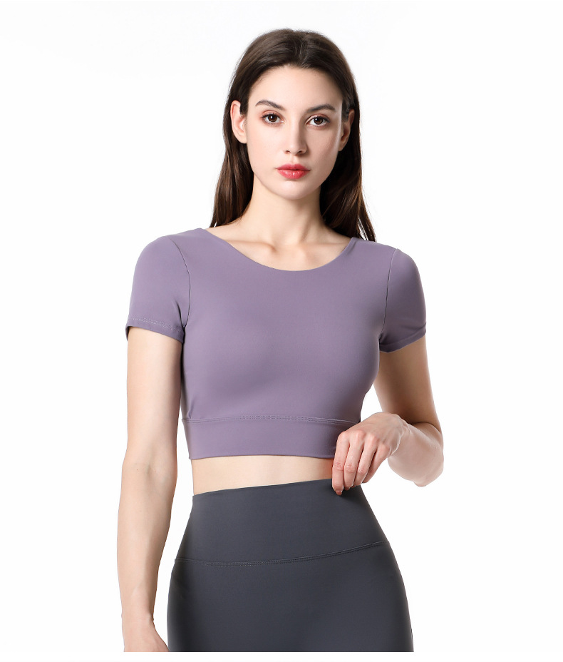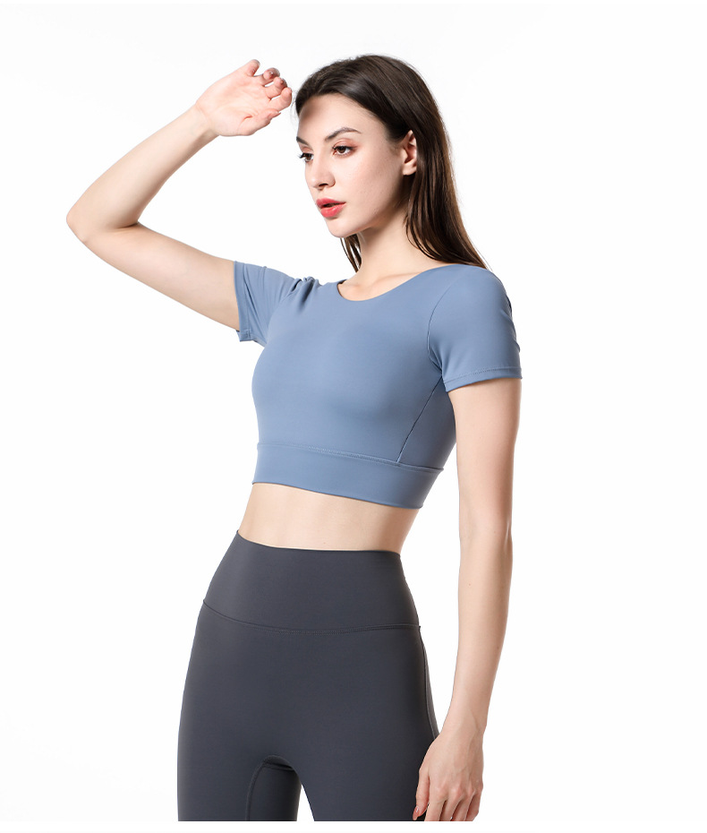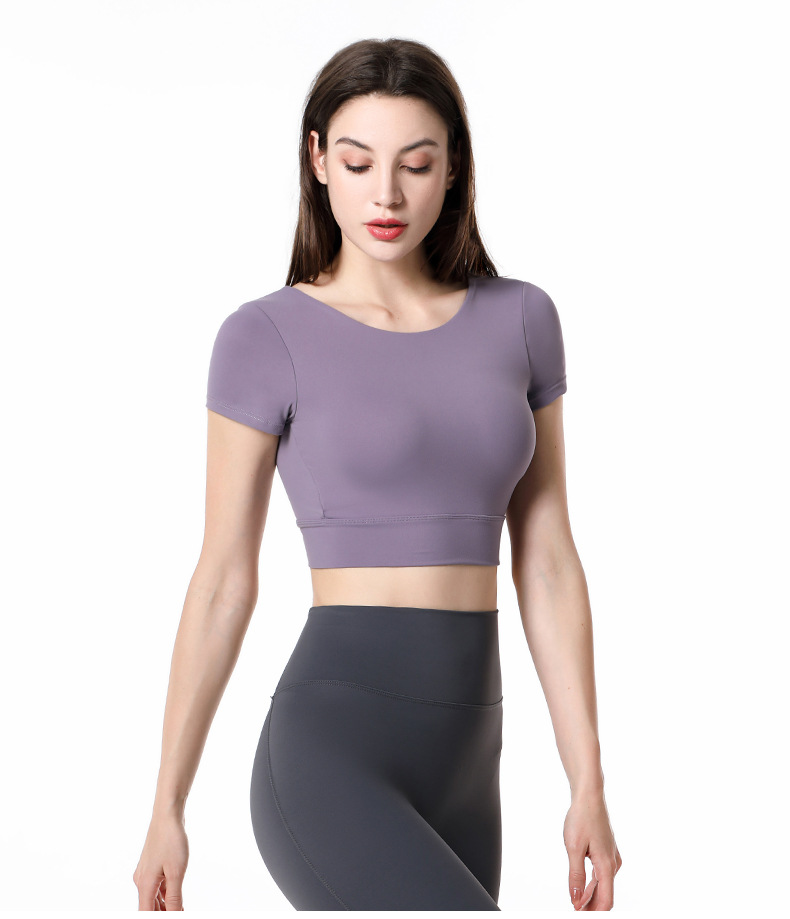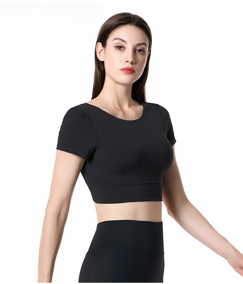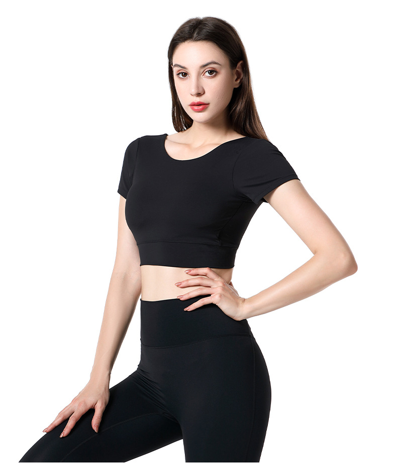 가슴 패드가 달린 반팔 요가 의류 탑 스포츠 피트니스 의류 기질 패션 여성을위한 섹시한 아름다운 백 탑스토어 가기