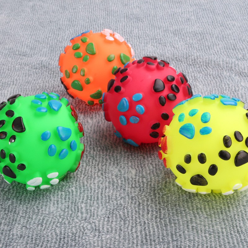 애완 동물 용품 제조 업체 도매 개 소리 고무 공 물린 방지 어금니 청소 공 발자국 패턴 색상스토어 가기