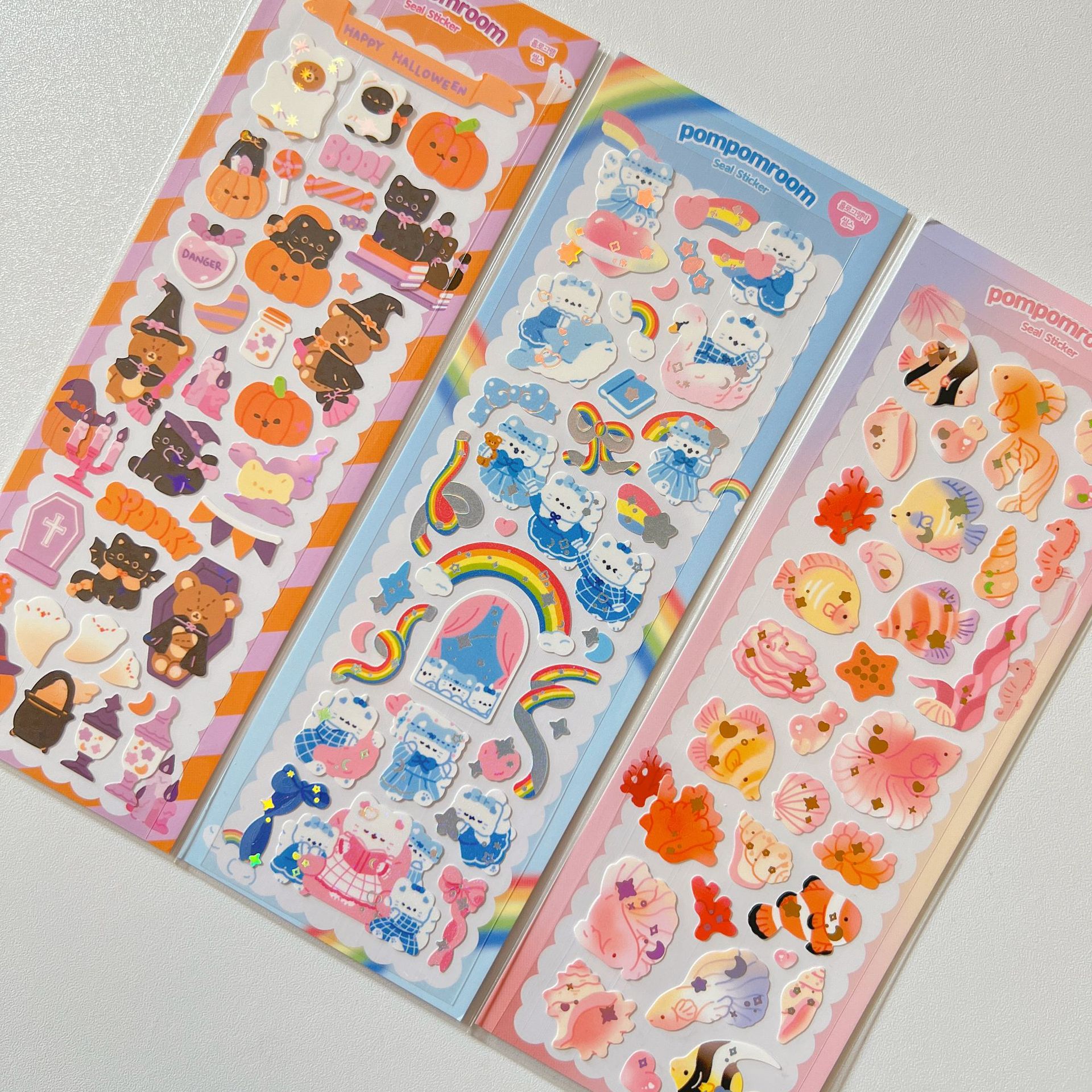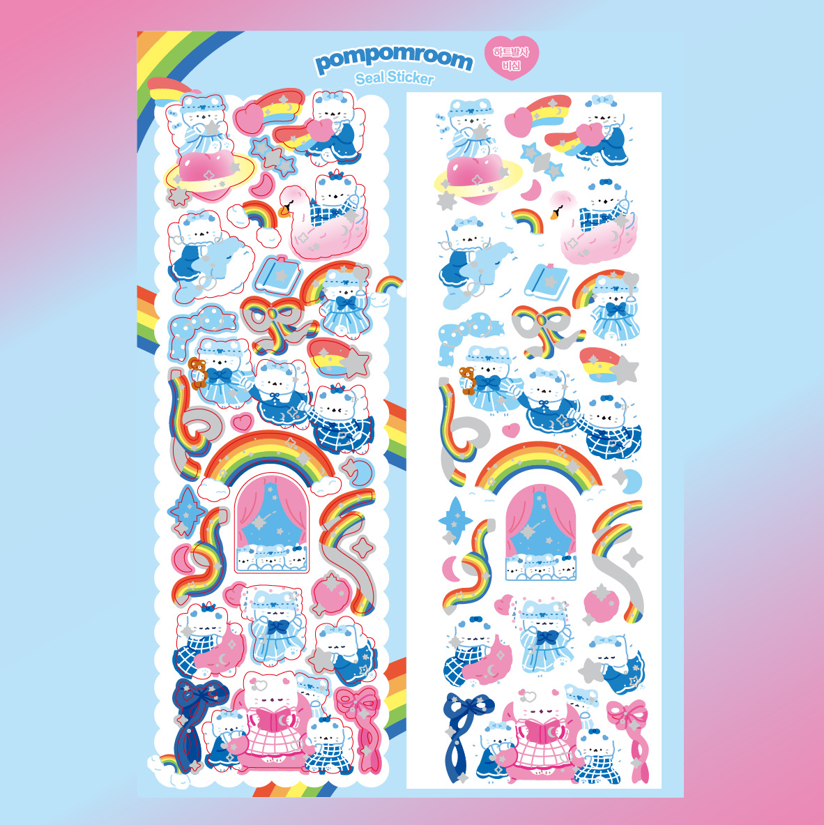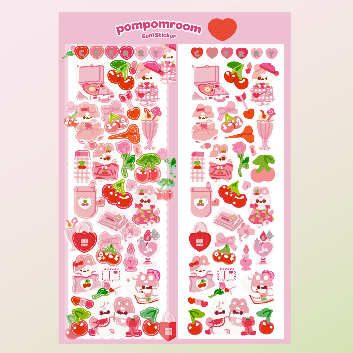 한국 in 핫 실버 만화 스티커 귀여운 구 카드 DIY 장식 스티커 체리 무지개 스티커스토어 가기