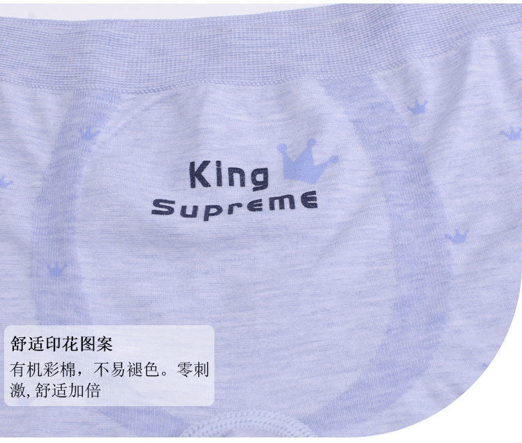 跨境4条盒装一片式无缝彩棉平角裤王者一号裸氨纯棉男士内裤批发 RMB:24.99