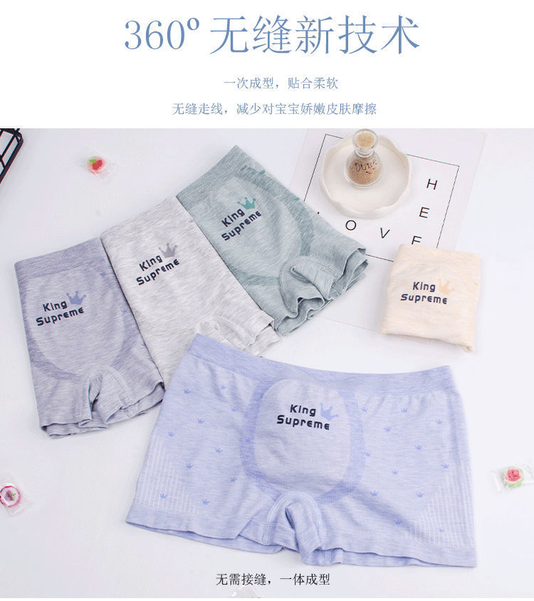 跨境直播无缝少男儿童内裤纯彩棉莫代尔小中大童男孩平角短内裤 RMB:4.99
