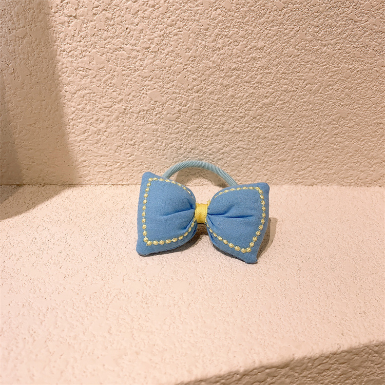 봄 새로운 어린이 패브릭 활 헤어 링 작은 소녀의 면 나비 넥타이 헤어 로프 포니 테일 고무 밴드 헤드 로프