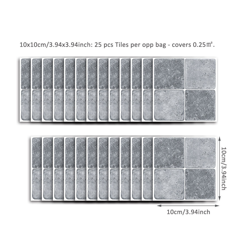FUNLIFE 유리 벽 스티커 회색 대리석 모자이크 욕실 타일 스티커 25 장 자체 접착 벽 스티커 SJ016스토어 가기