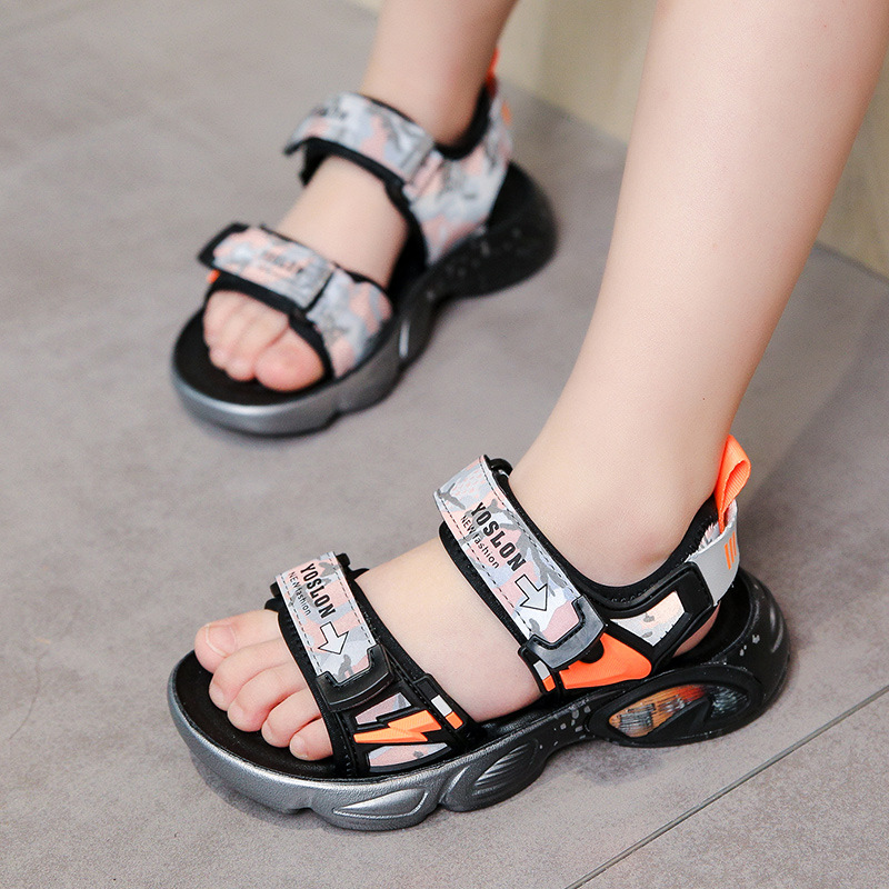 소년 샌들 2024 여름 뉴 비치 슈즈 캐주얼 패션 소프트 솔 라이트 보이 벨크로 샌들 트렌디스토어 가기