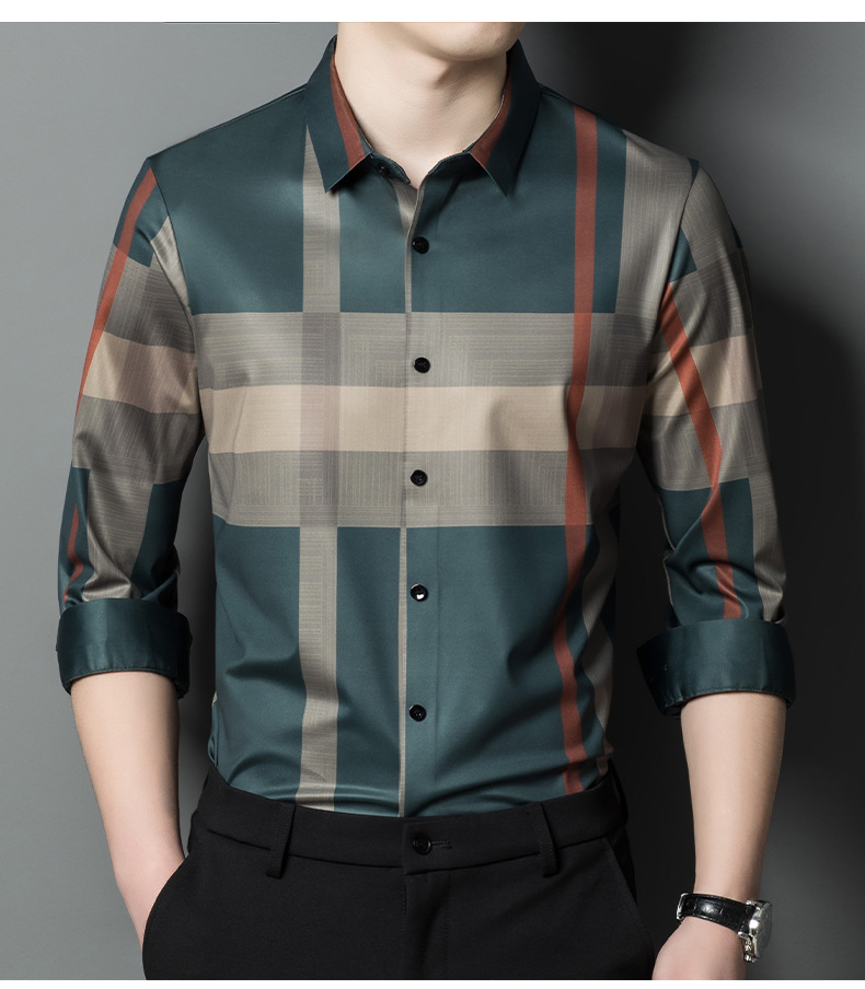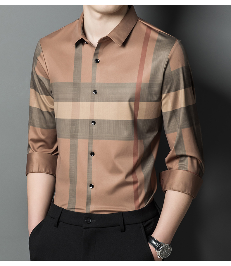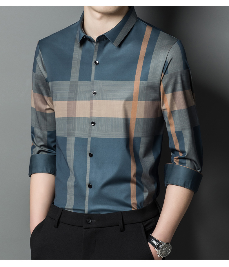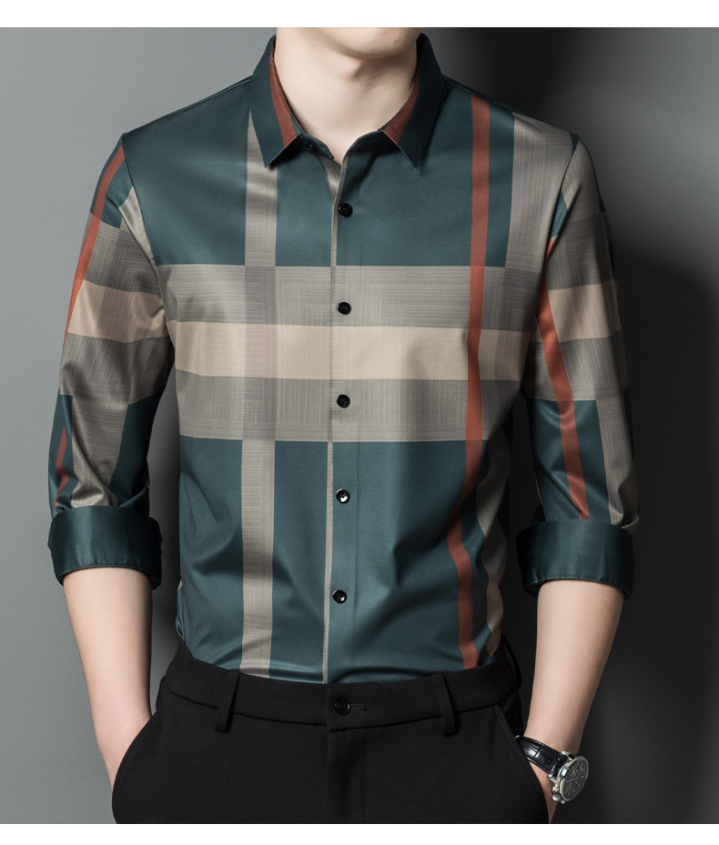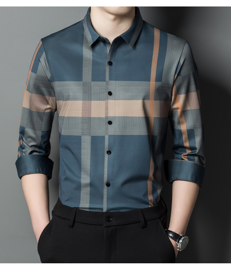 중년 남성 비즈니스 캐주얼 긴 소매 격자 무늬 셔츠 봄 뉴 심플 패션 남성베이스 얇은 셔츠