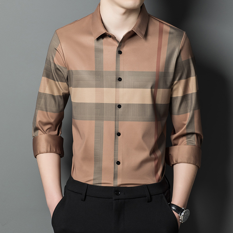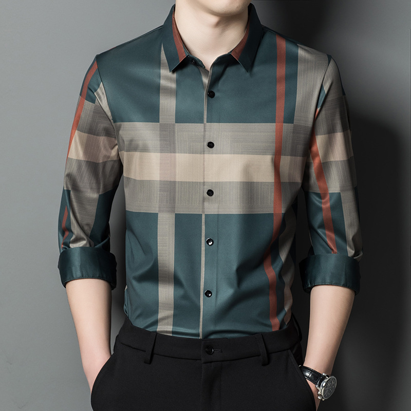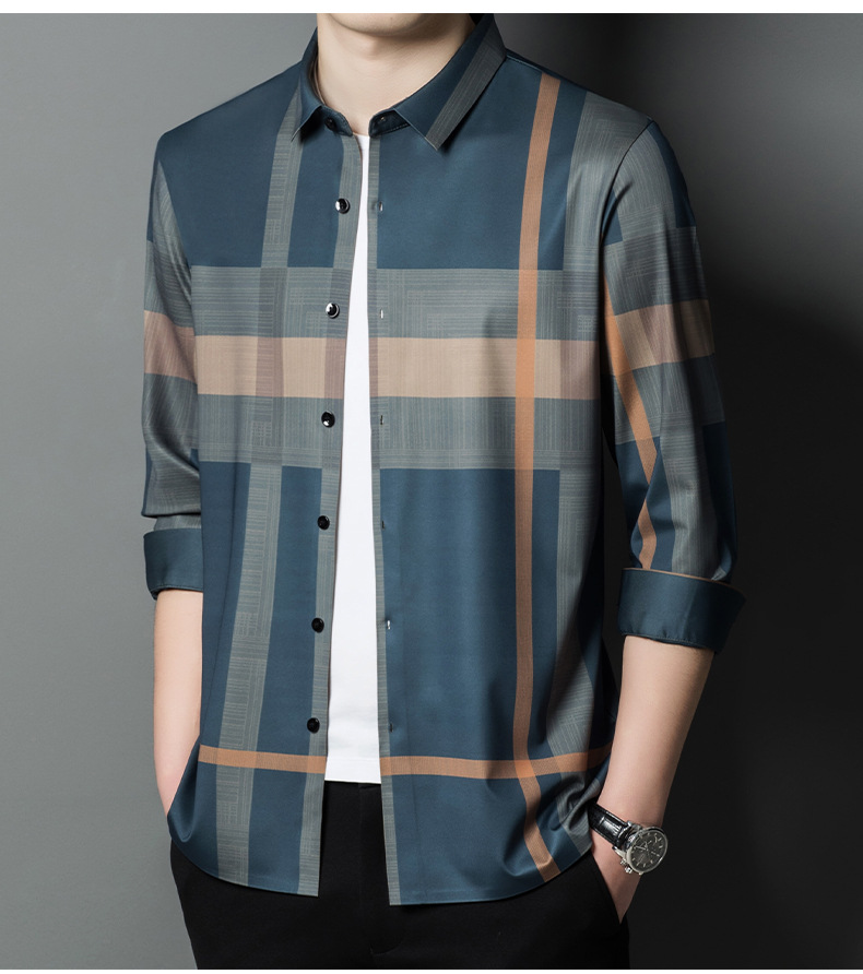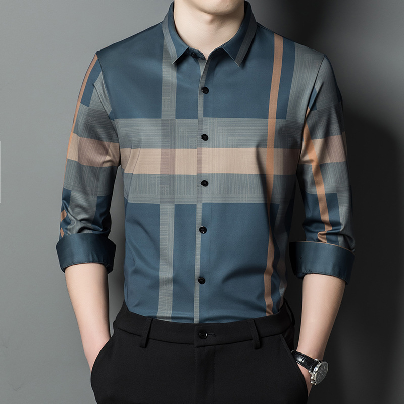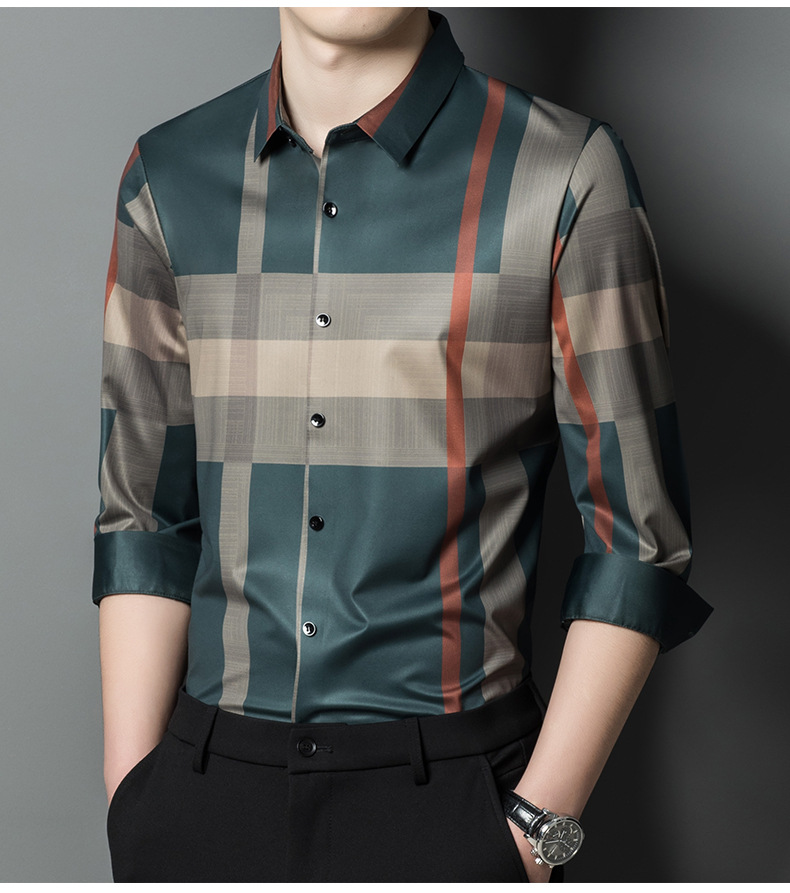 중년 남성 비즈니스 캐주얼 긴 소매 격자 무늬 셔츠 봄 뉴 심플 패션 남성베이스 얇은 셔츠