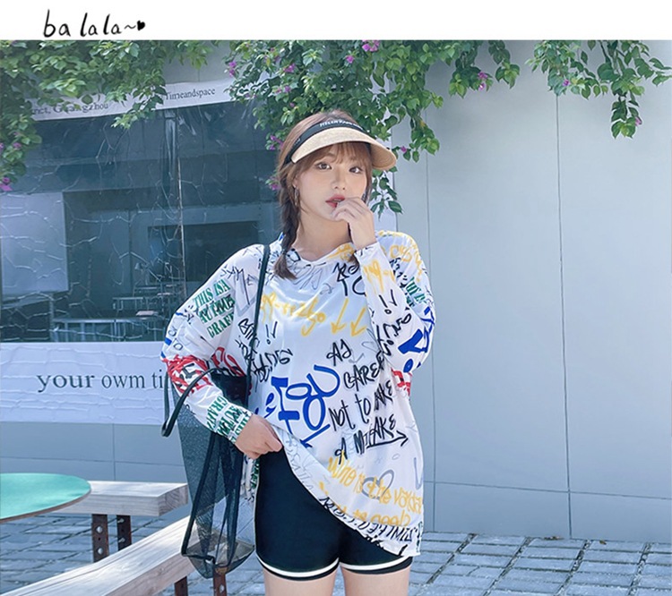 플러스 사이즈 수영복 여성용 여름 지방 mm200 kg 스플릿 쓰리피스 스커트 아우터 셔츠 배꼽 덮음 슬림 살점 덮음 스포츠 수영복