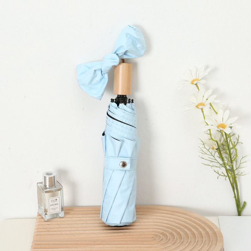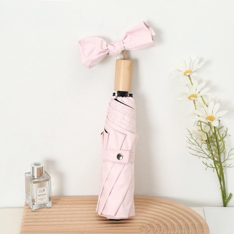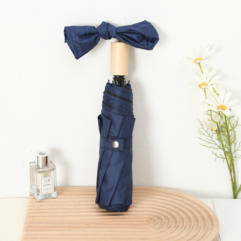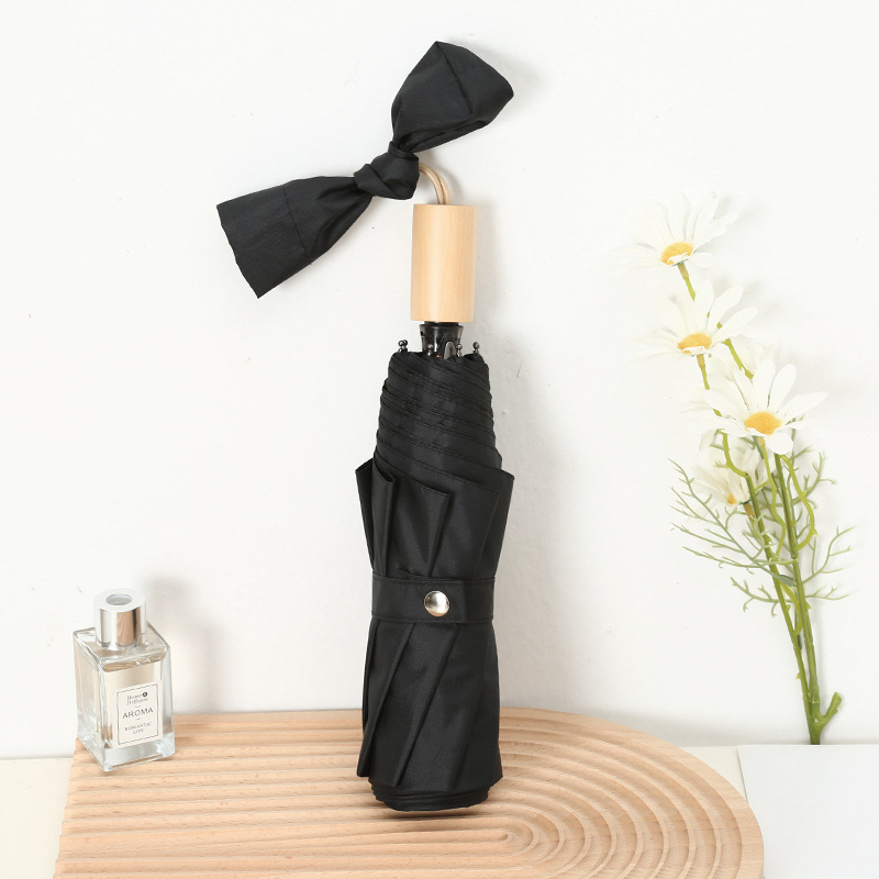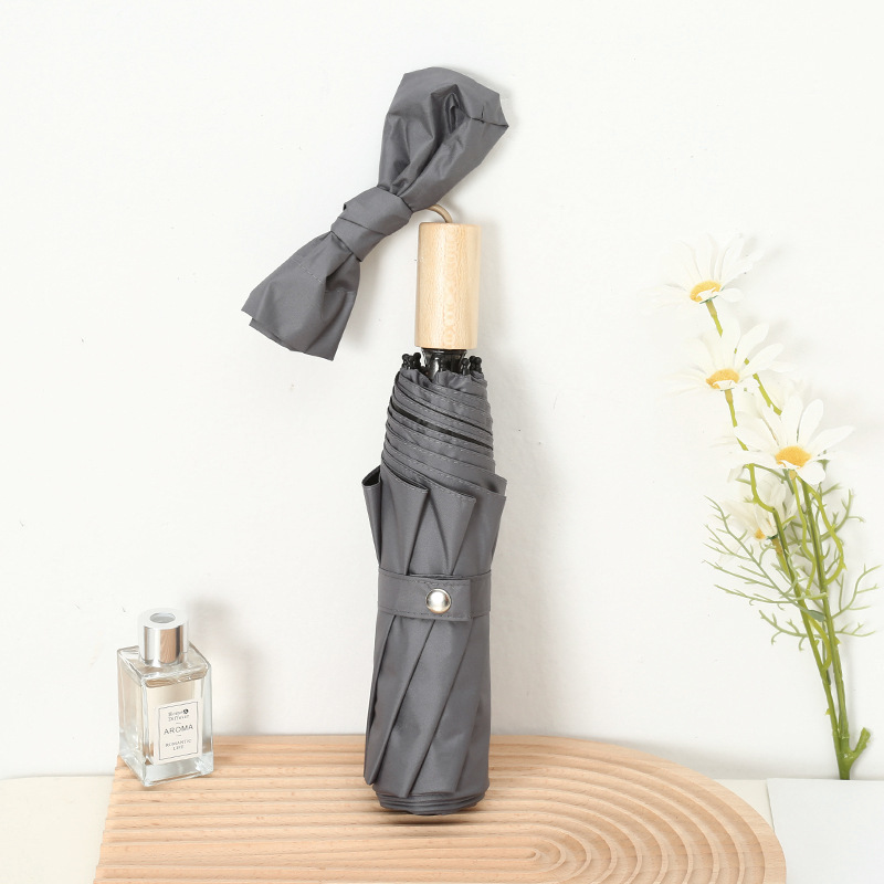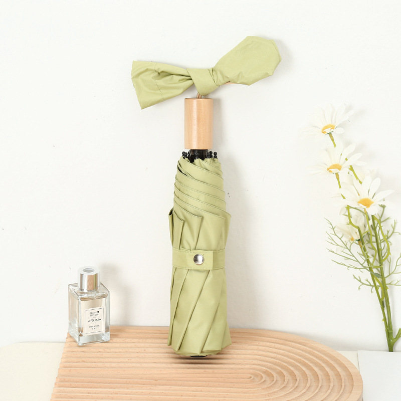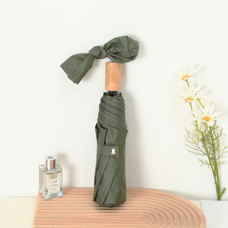 나무 손잡이 빈티지 우산 접는 맑고 비오는 이중 목적 태양 우산 자외선 차단제 UV 보호 여성의 미니멀리스트 금욕 스타일 스타일 스타일