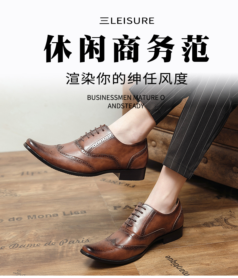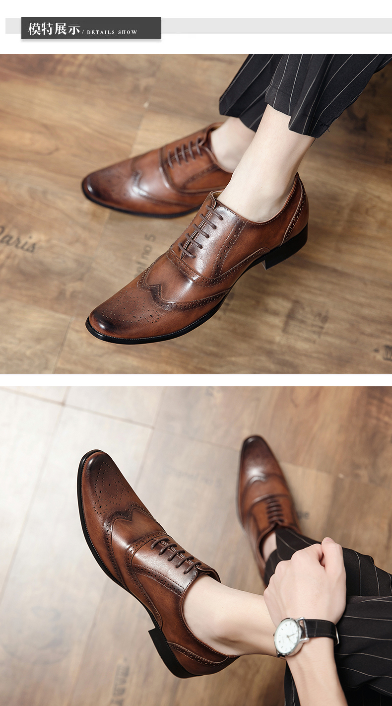 英伦复古布洛克雕花皮鞋春秋新款休闲商务百搭发型师西装婚礼男鞋