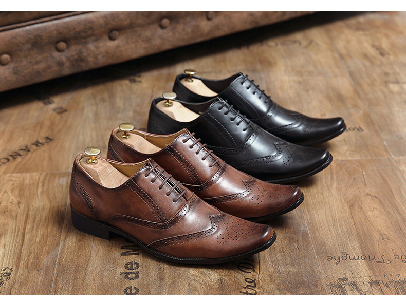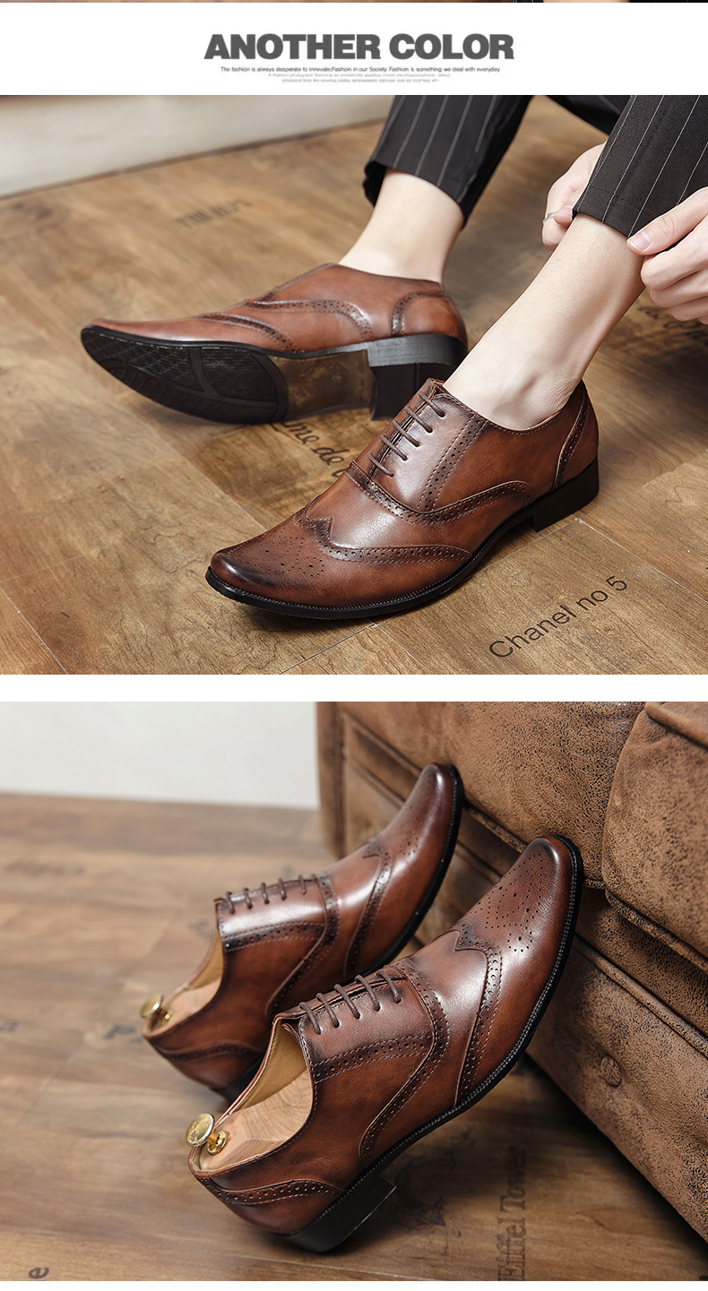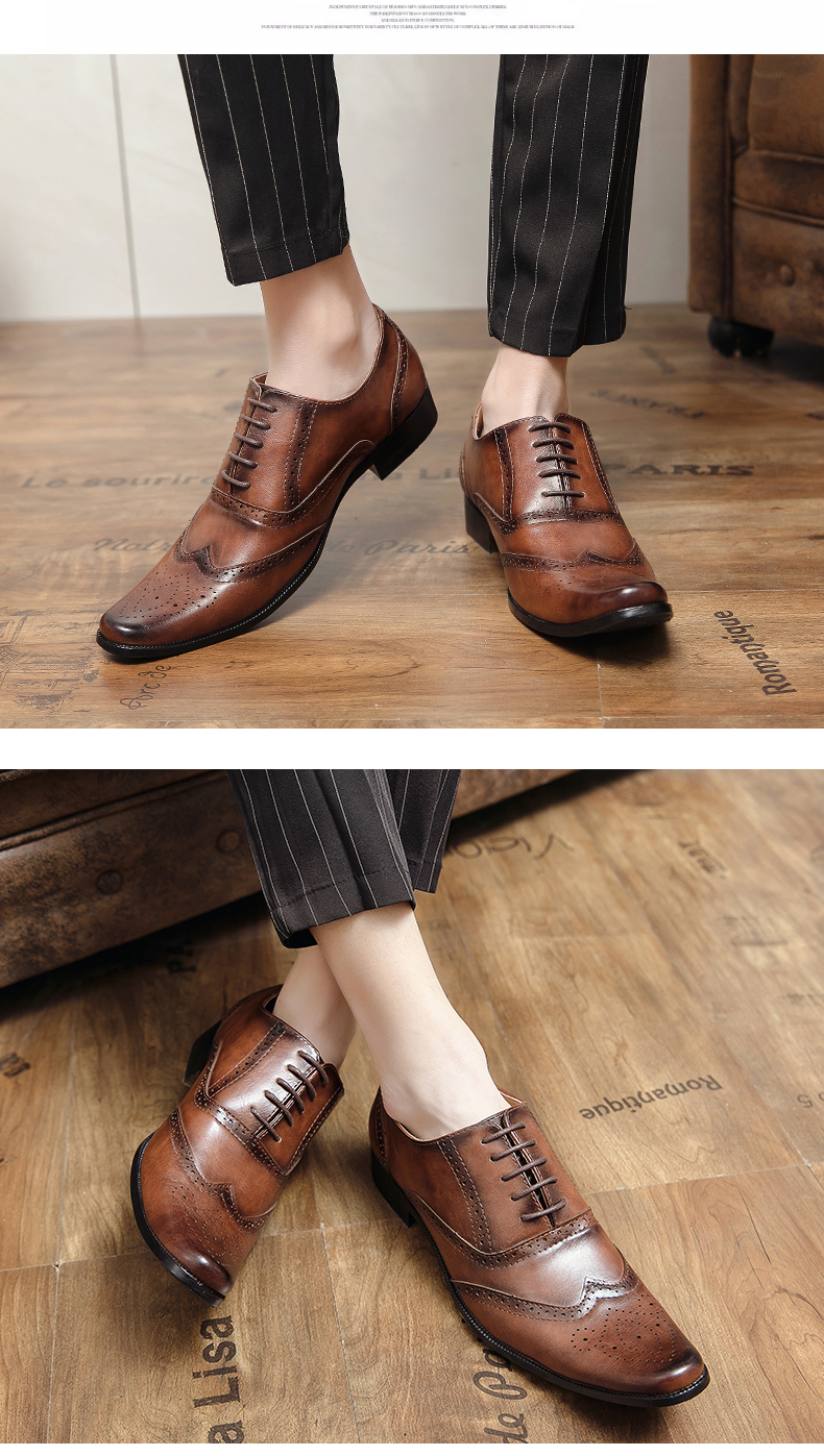 영국 빈티지 브로그 조각 가죽 신발 봄과 가을 새로운 캐주얼 비즈니스 모든 일치 헤어 스타일리스트 세트 웨딩 남성 신발