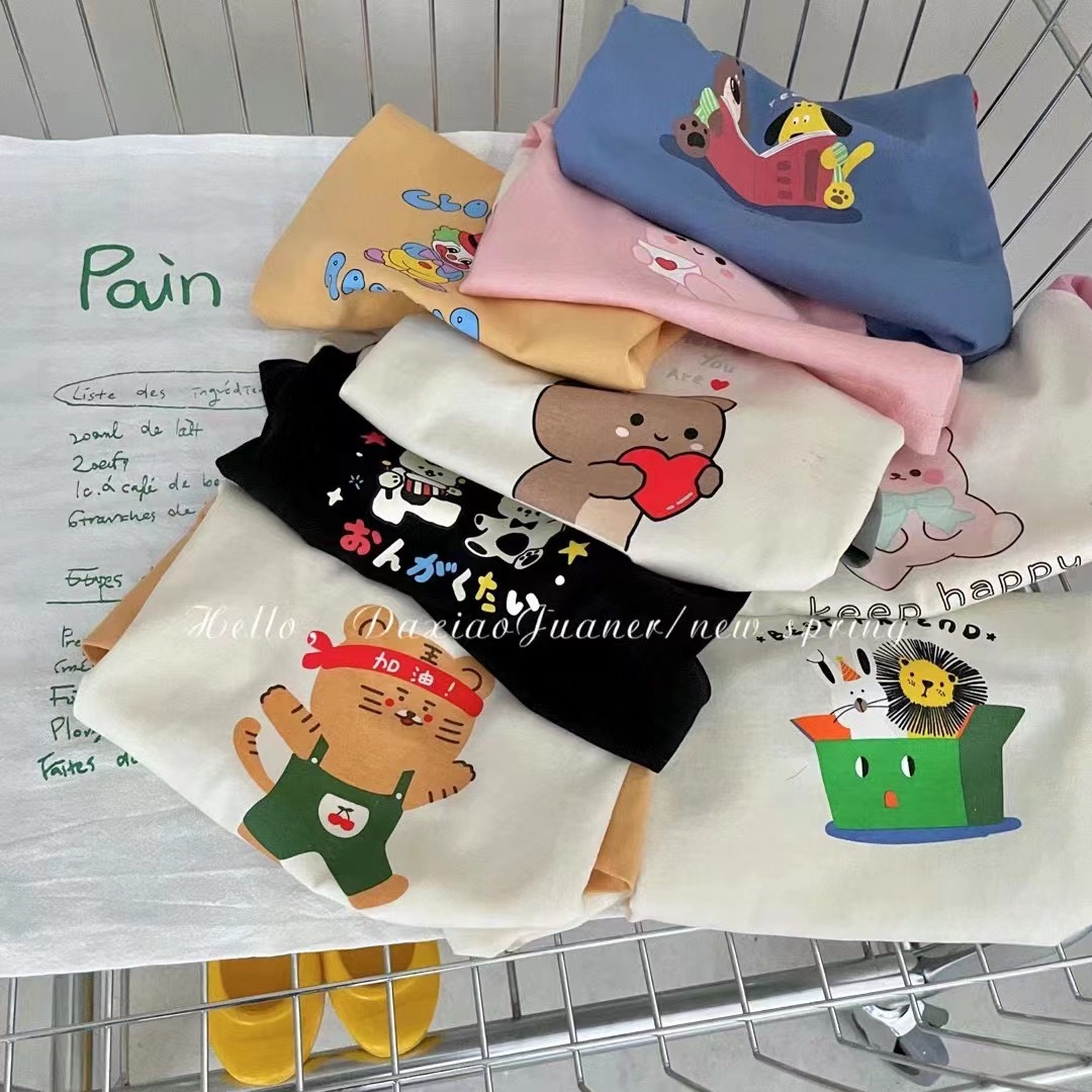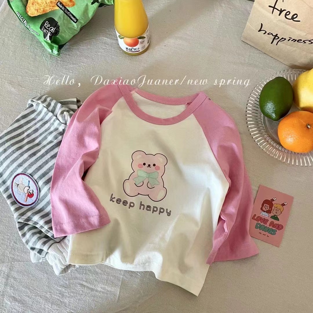 재고 사이즈 롤 2023 봄과 여름 새로운 어린이 라글란 바닥 셔츠 긴 소매 만화 셔츠 머리카락의 세대스토어 가기