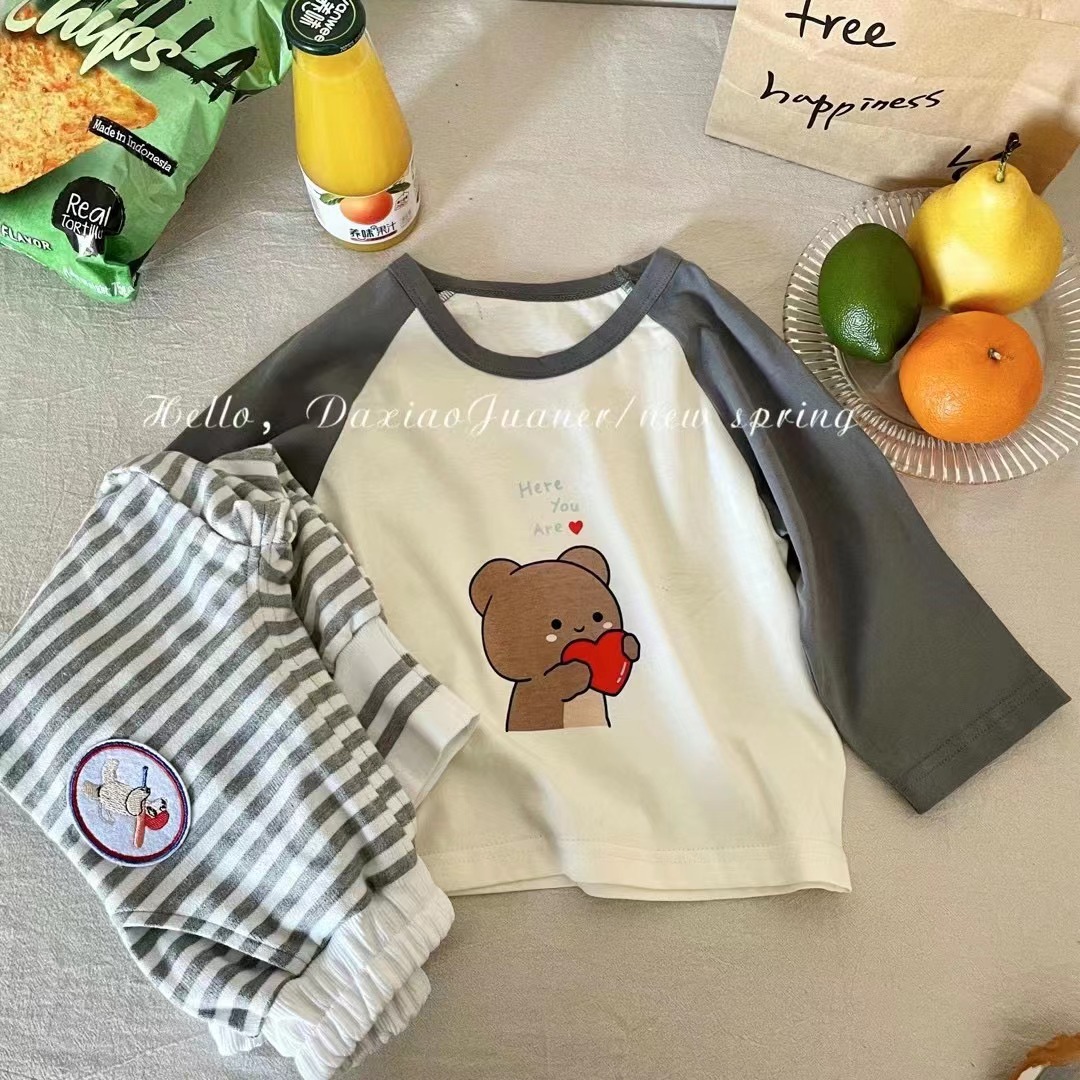 재고 사이즈 롤 2023 봄과 여름 새로운 어린이 라글란 바닥 셔츠 긴 소매 만화 셔츠 머리카락의 세대