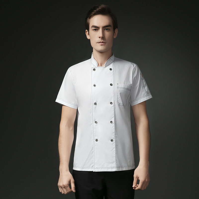 봄과 여름 요리사 작업복 남성과 여성의 반팔 식사 통기성 트렌드 중국 스타일 요리사 의류 주방 플러스 사이즈 플러스 지방스토어 가기