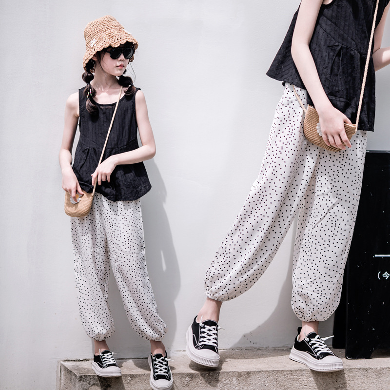 여아 얇은 프린트 모기 방지 바지 2023 봄과 여름 새 니핑 블루머 대형 아동용 루즈한 캐주얼 롱 팬츠