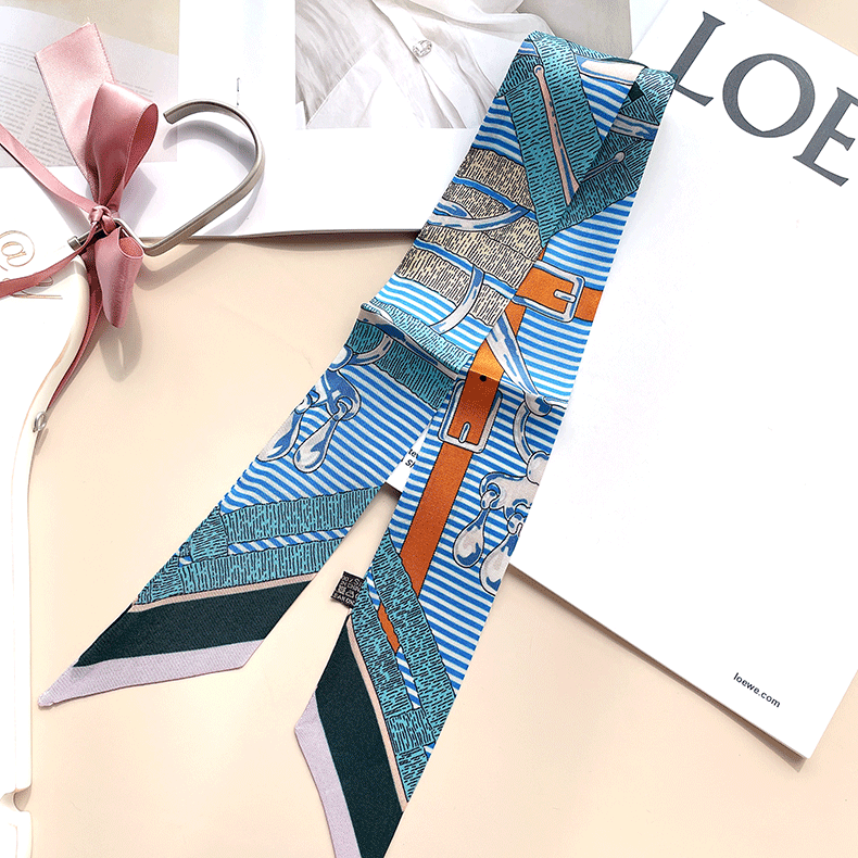 다양한 색상의 얇고 긴 뽕나무 실크 스카프, 사선 무늬 실크 다용도 여성 패션 리본
