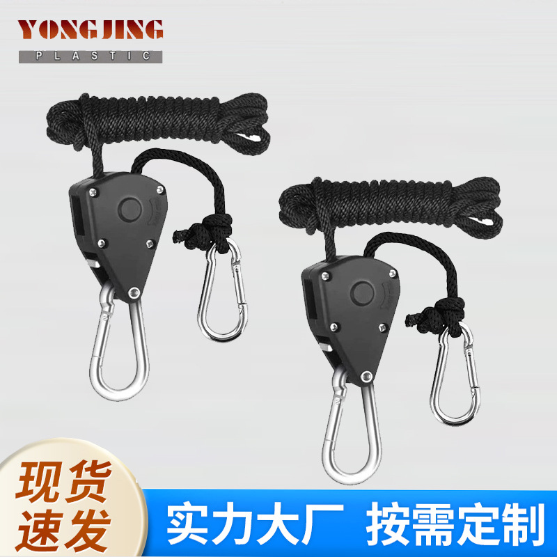 多种用途:可用作成长灯挂钩、捆绳、绳钩。也可以用作帐篷绳调节滑轮。帮助您轻松完成帐篷的搭建工作。