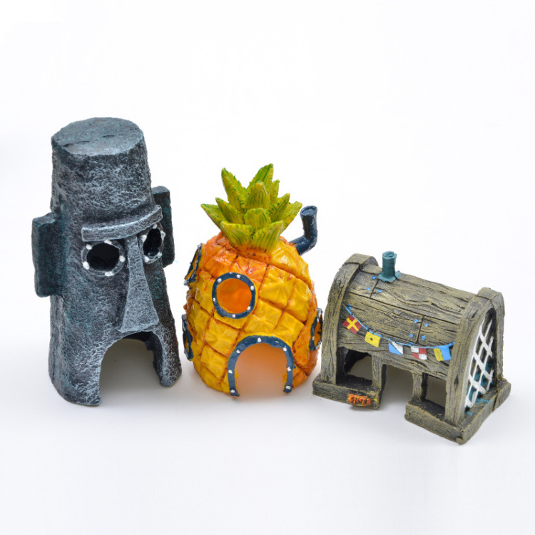 파인애플 하우스 어항 조경 장식 스폰지 밥 아기 인형 수족관 만화 수지 작은 장식품 물고기와 새우 탈출 집스토어 가기