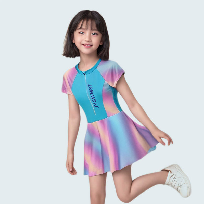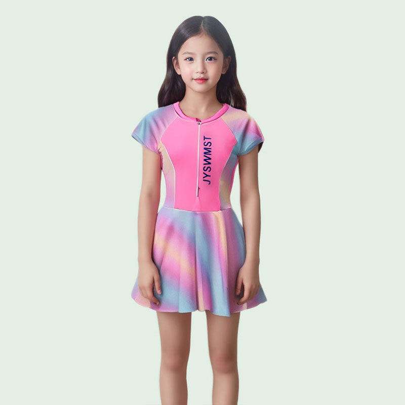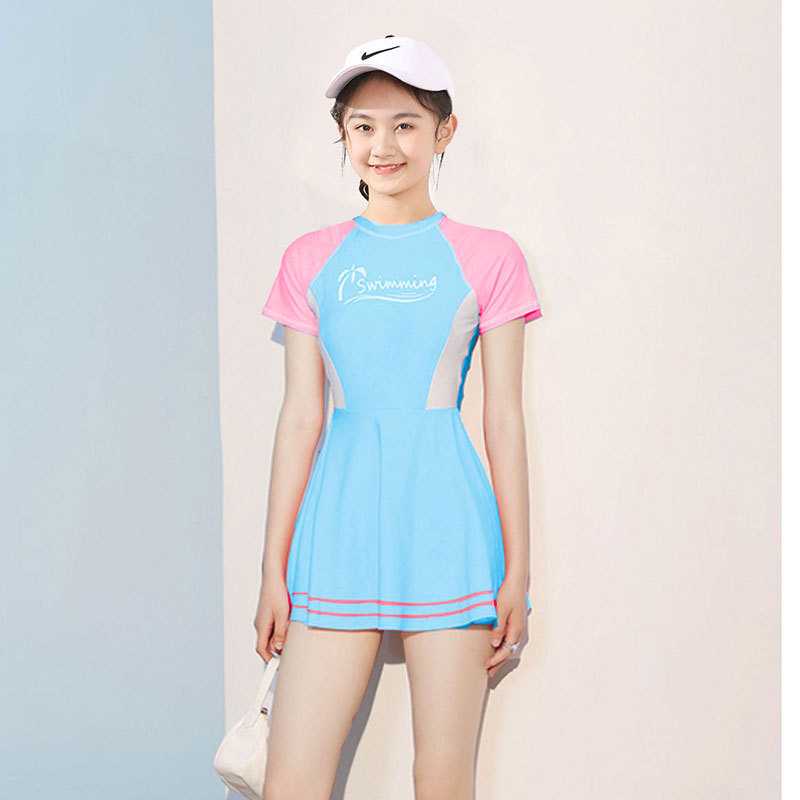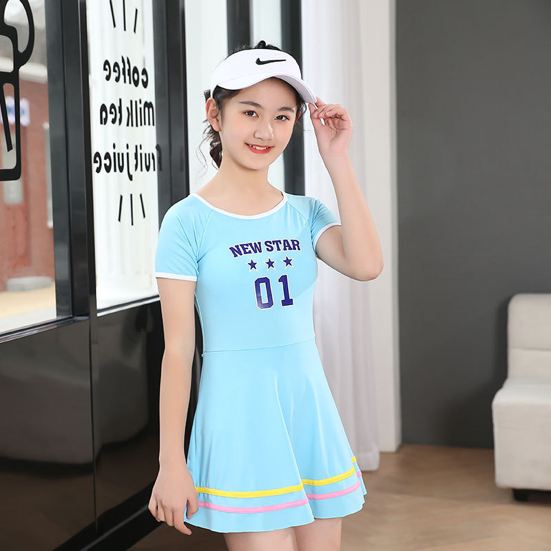 어린이 수영복 스포츠 전문 트레이닝 반팔 원피스 스커트 수영복 속건 여아 수영복 온천
