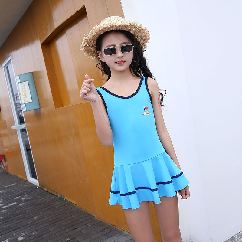 儿童泳衣女童连体裙式无袖中小童宝宝公主洋气女孩可爱休闲游泳装