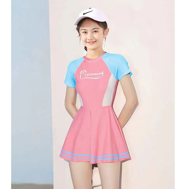 어린이 수영복 스포츠 전문 트레이닝 반팔 원피스 스커트 수영복 속건 여아 수영복 온천스토어 가기