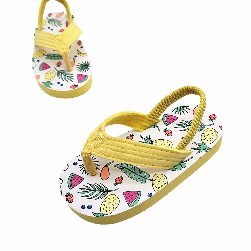재고 여름 새로운 대외 무역 어린이 캐주얼 노란색 인쇄 과일 플립 플롭 여아 샌들스토어 가기
