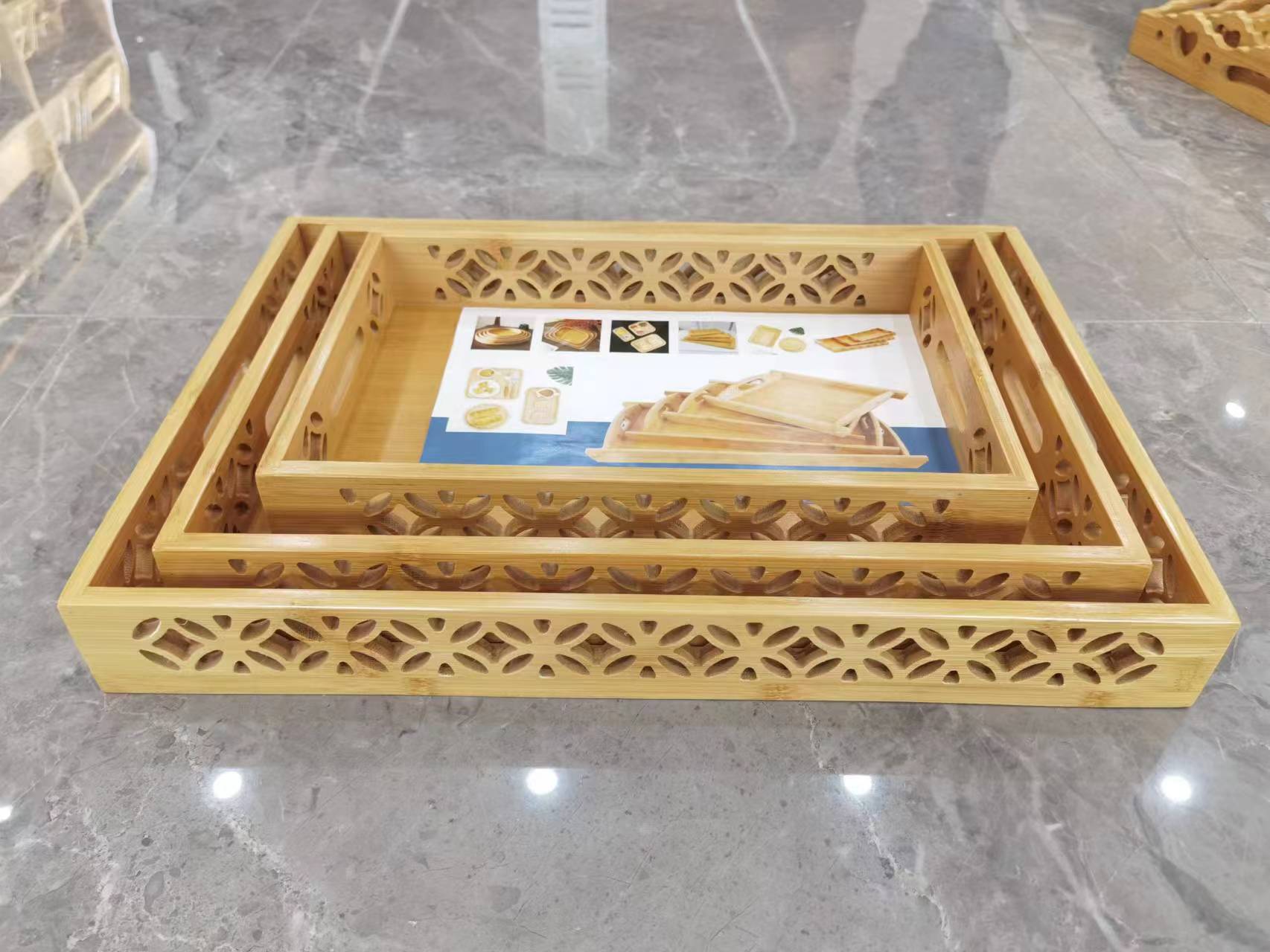 대나무 트레이 직사각형 원형 호텔 레스토랑 전체 대나무 디너 트레이 로고 인쇄 가능 중국 차 트레이