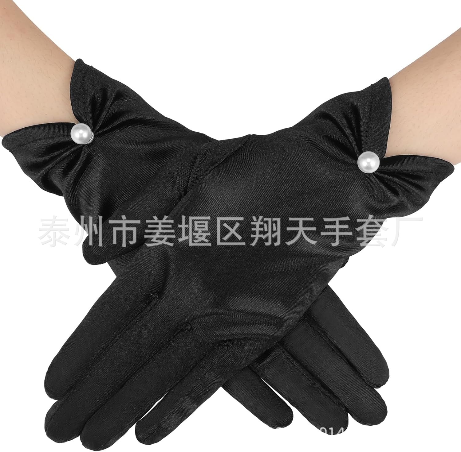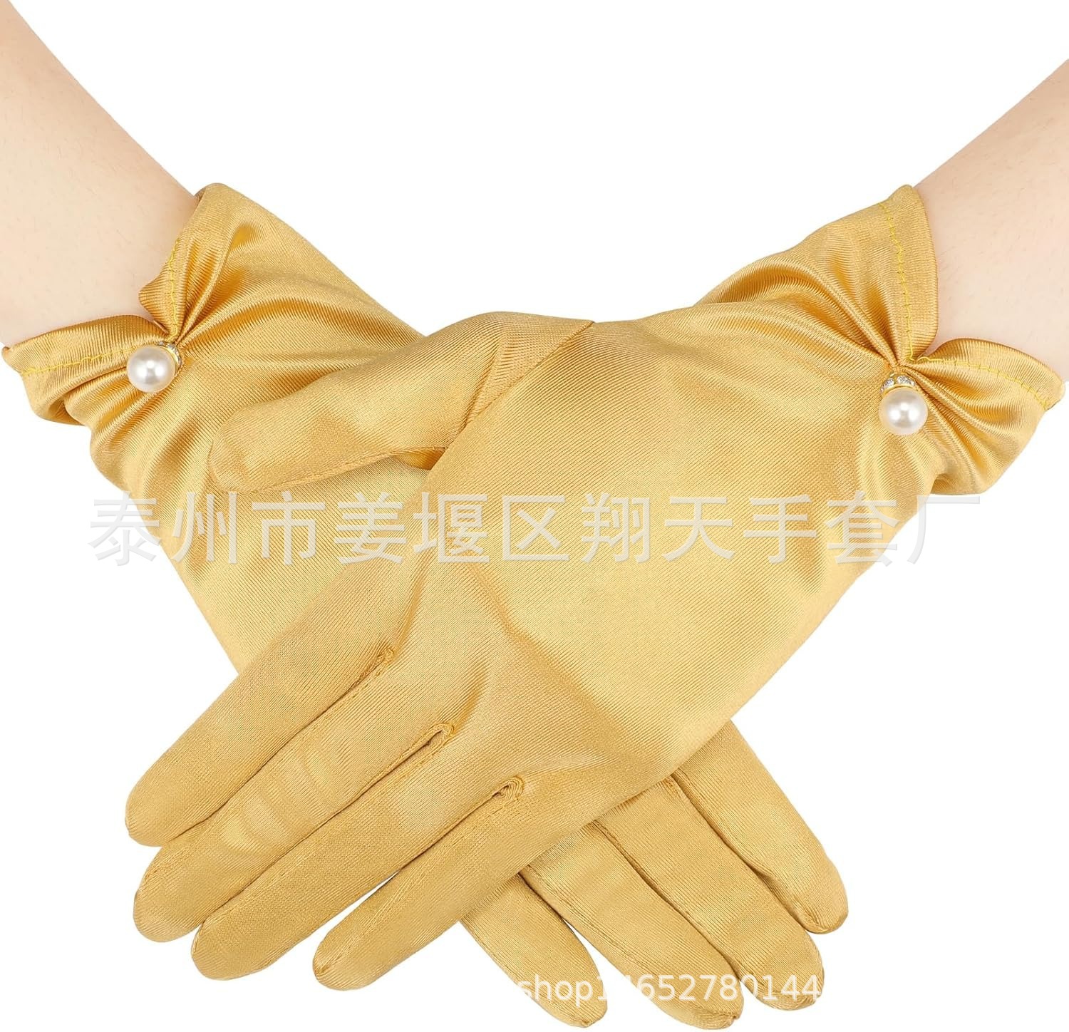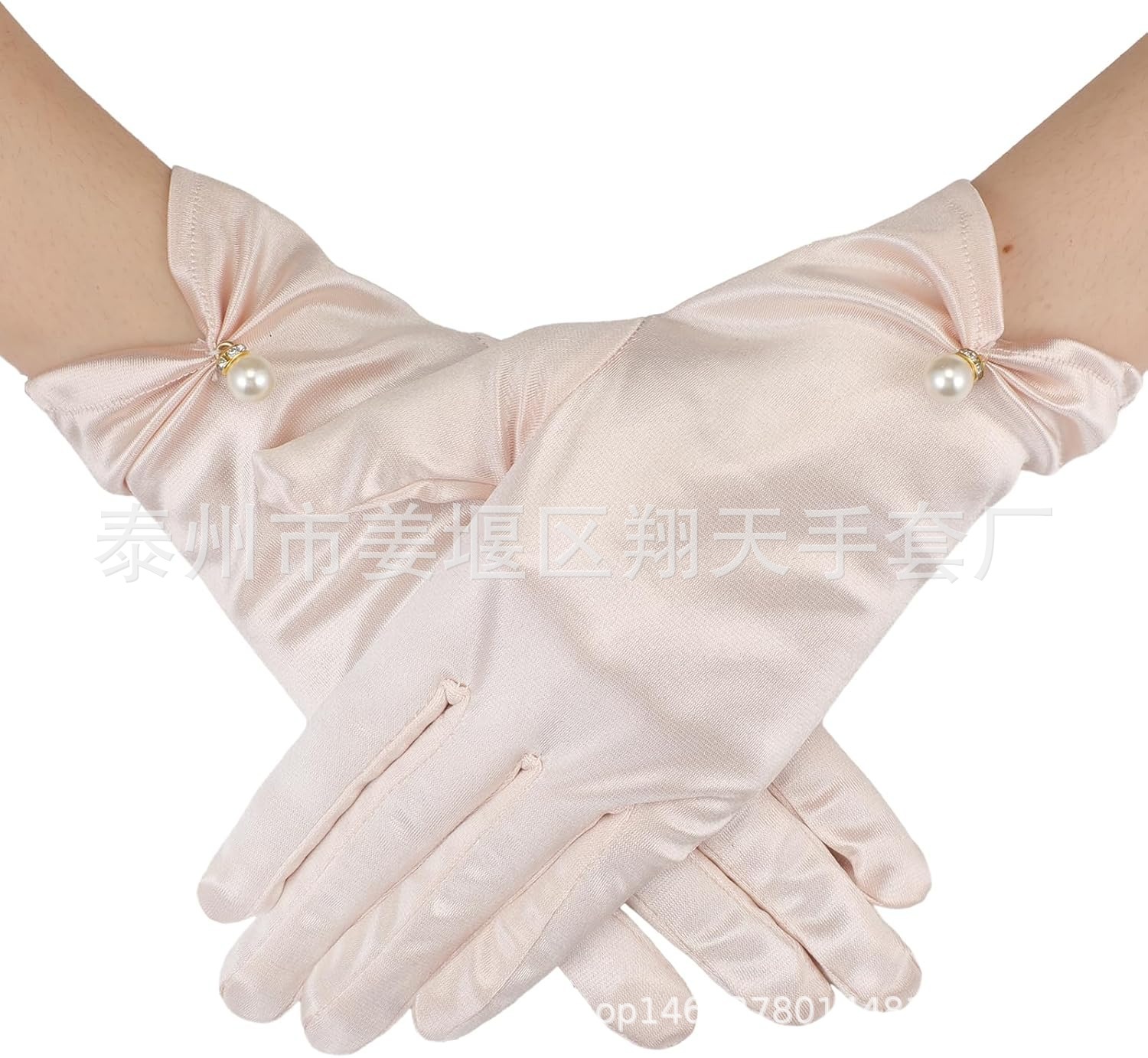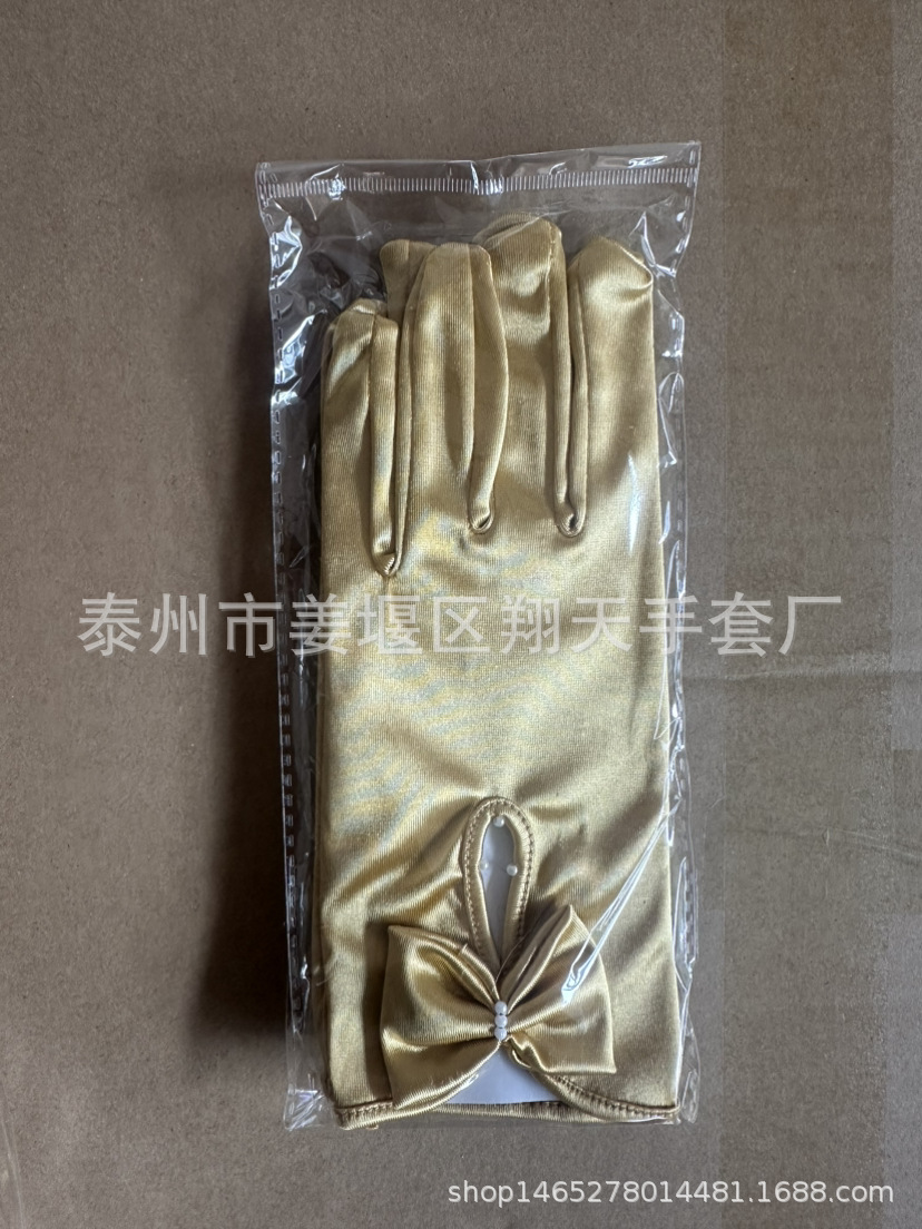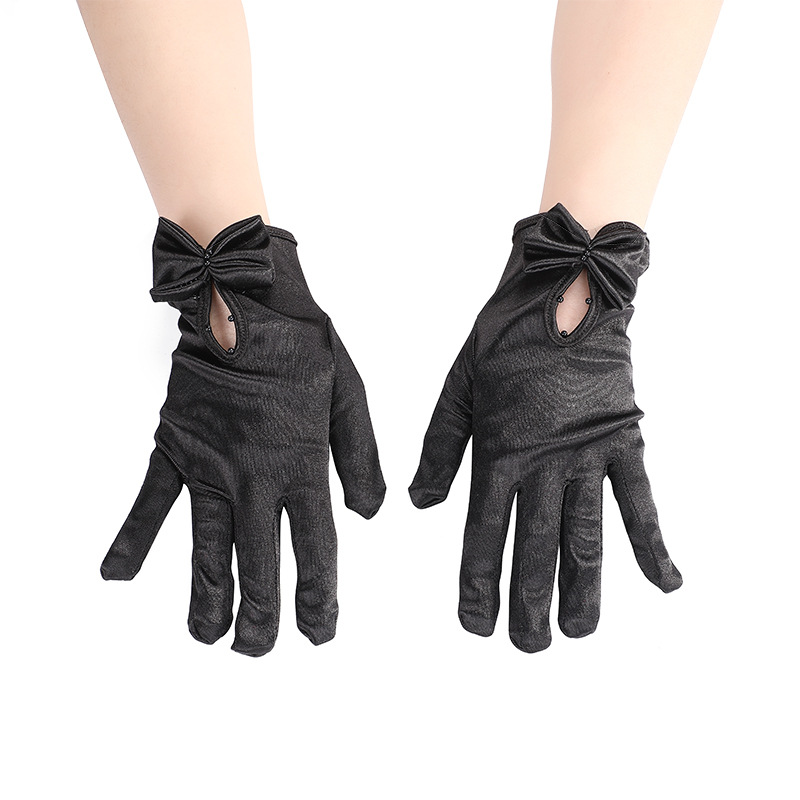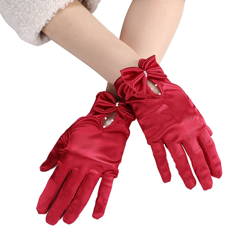 새로운 진주 활 장갑 새로운 웨딩 원피스 볼 저녁 식사 새틴 짧은 장갑 크로스 테두리