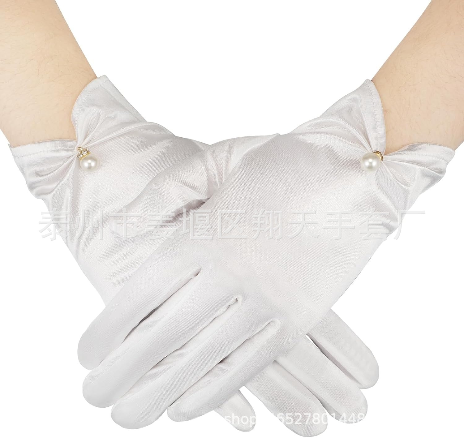 새로운 진주 활 장갑 새로운 웨딩 원피스 볼 저녁 식사 새틴 짧은 장갑 크로스 테두리스토어 가기