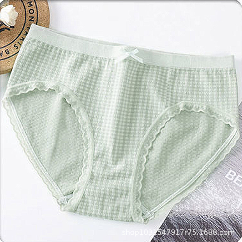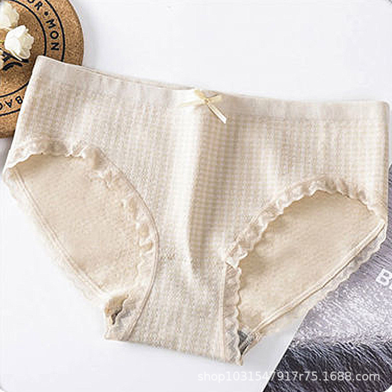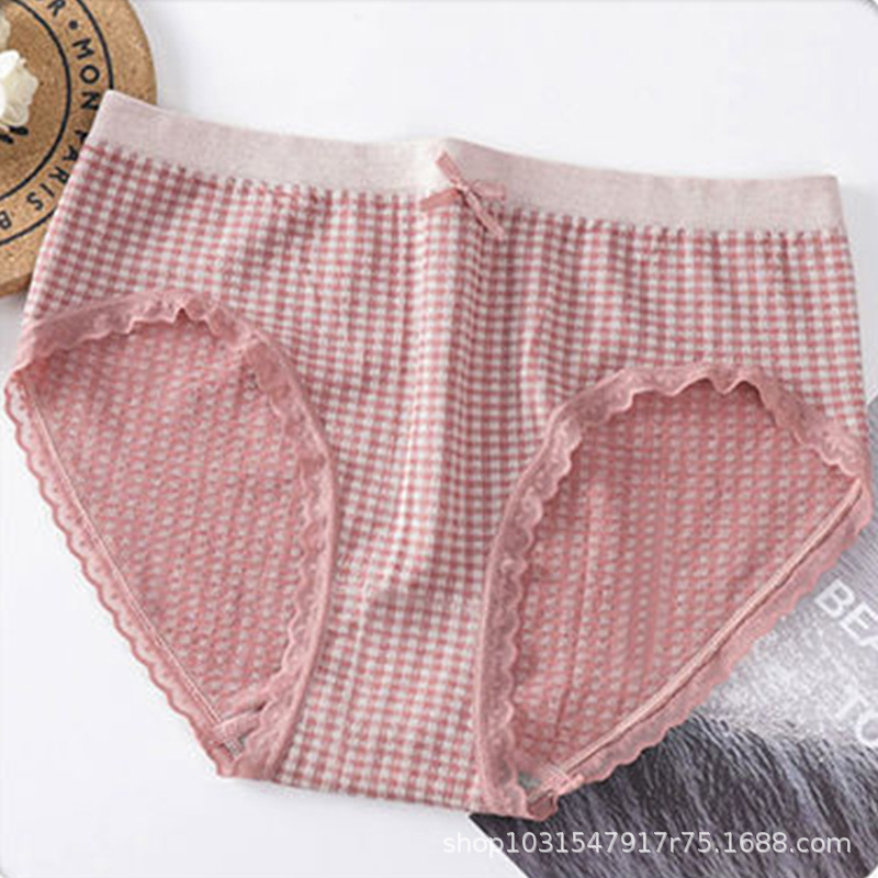 팬티 여성용 그래 핀 레이스 보우 일본식 격자 무늬 추적없는 중간 허리 달콤한 학생 소녀의 팬티스토어 가기