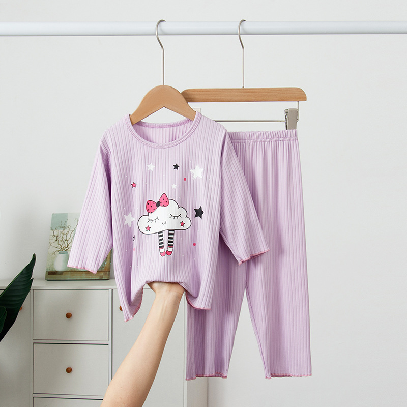 어린이 7 점 소매 가정복 소녀의 곰팡이 레이스 만화 에어컨 옷 아기의 여름 얇은 잠옷 2 종 세트스토어 가기