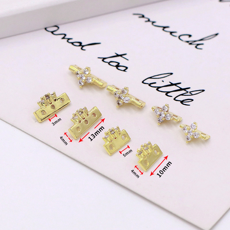• 3 홀 마이크로 상감 지르콘 크로스 스페이서 길이 * 너비 * 구멍 간격 13*4*3mm 10/가방