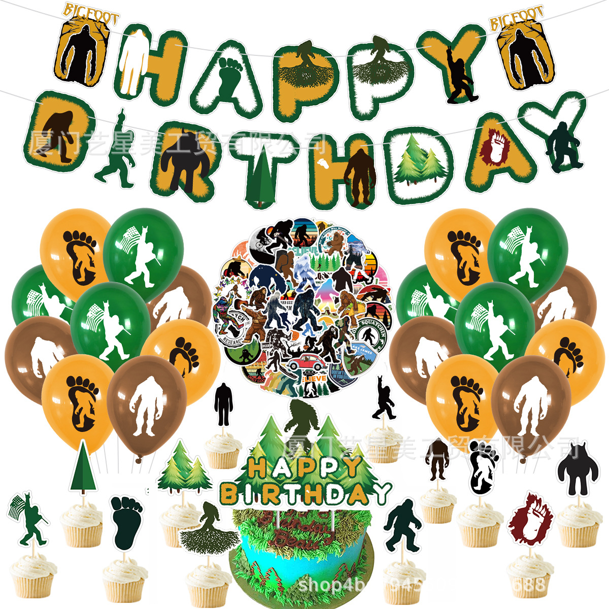 品名:bigfoot 大脚怪主题生日派对装饰套装 野人蛋糕插牌 生日拉旗气球