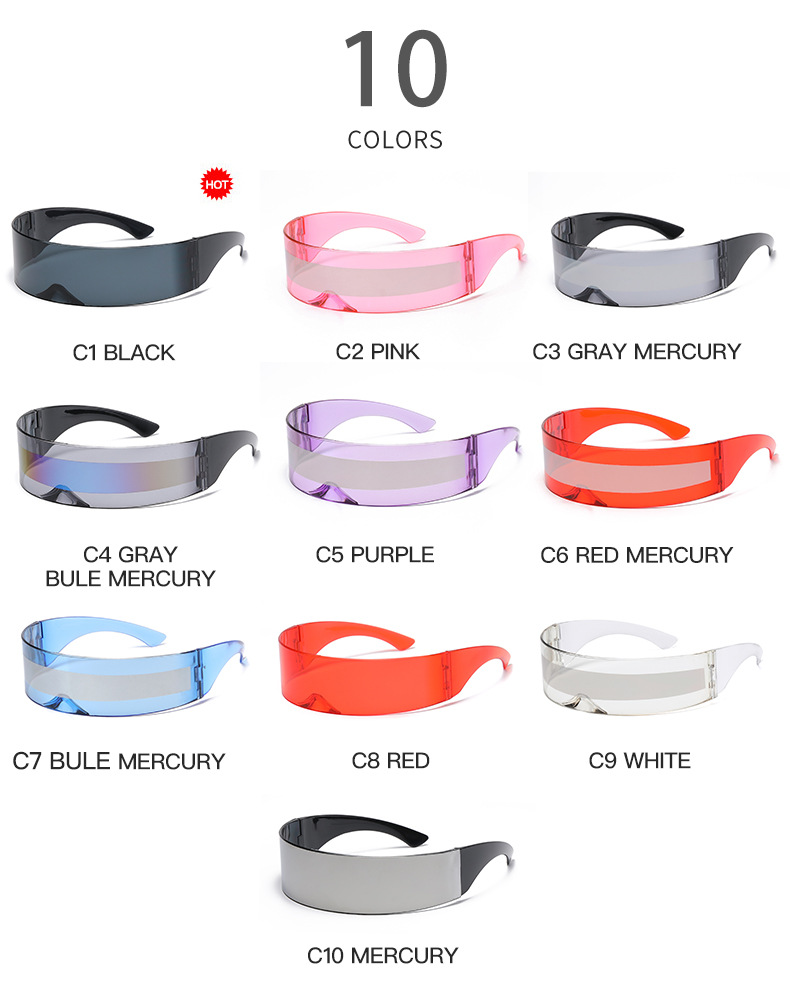 새로운 사이버펑크 미래형 올인원 선글라스 사이버 연예인 디스코 선글라스 개인화 된 유럽 및 미국 선글라스