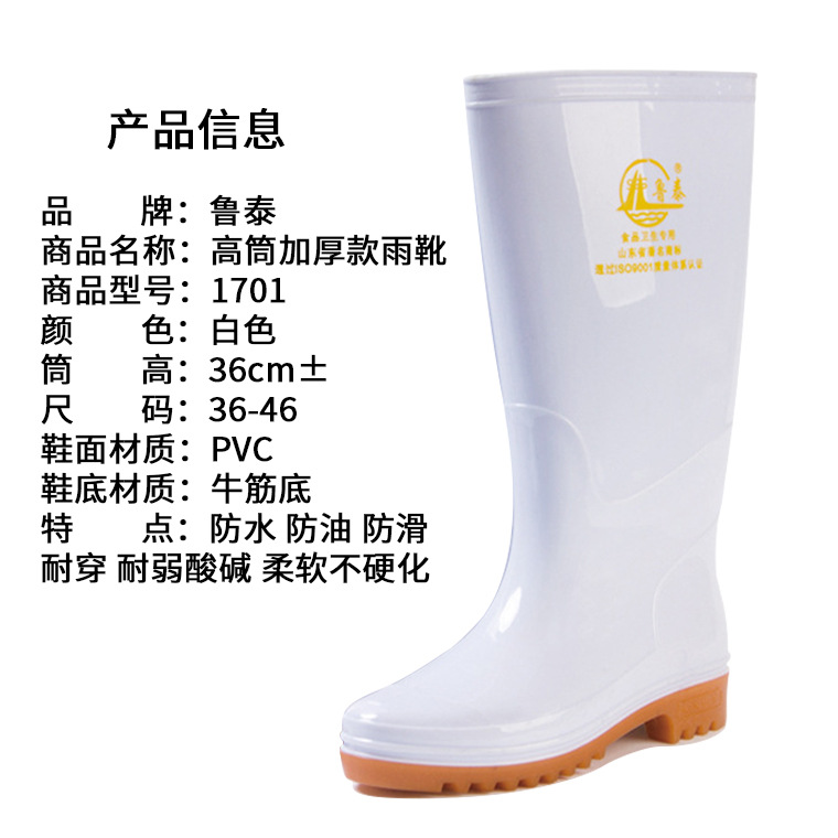 【商品名称】:鲁泰1701白色高筒加厚款雨靴
