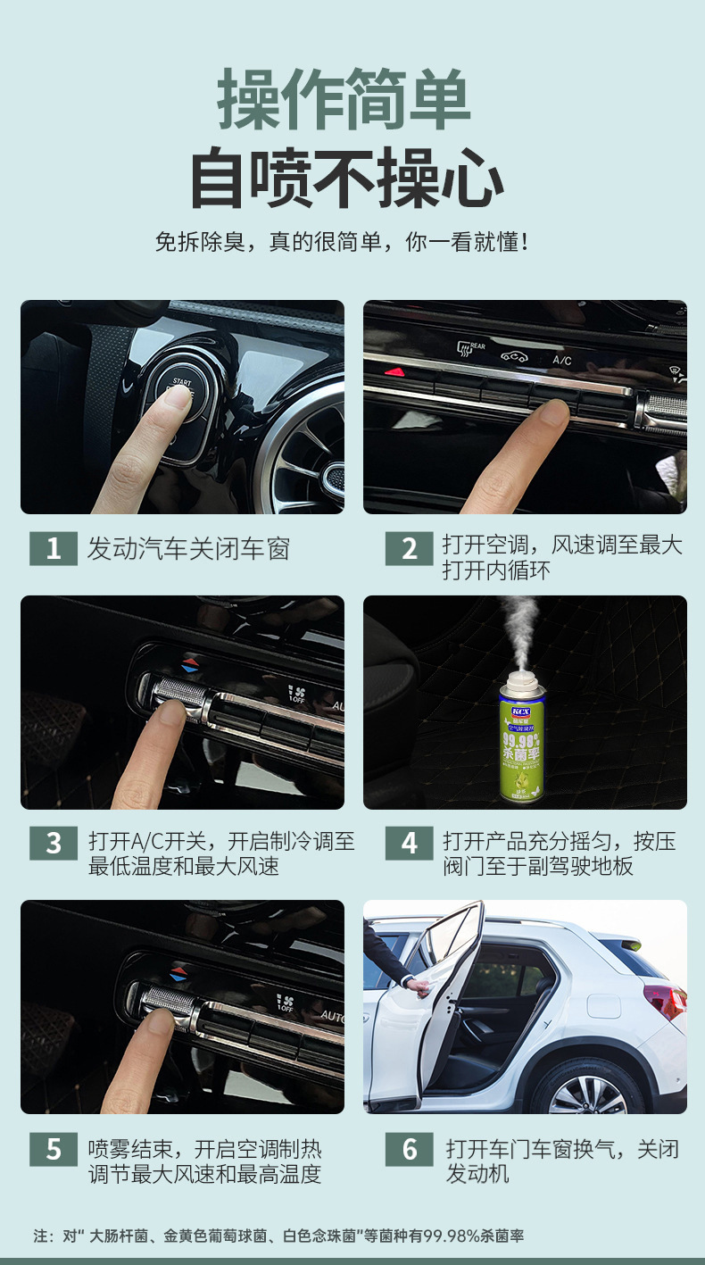 5.空调使用时请参照汽车空调使用方法,其余地方使用时请距离细菌,毒菌等易生长的地方20~25CM处喷射。