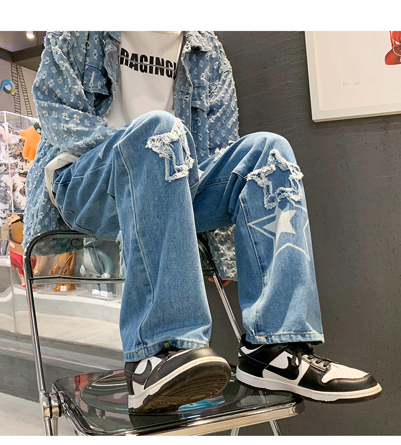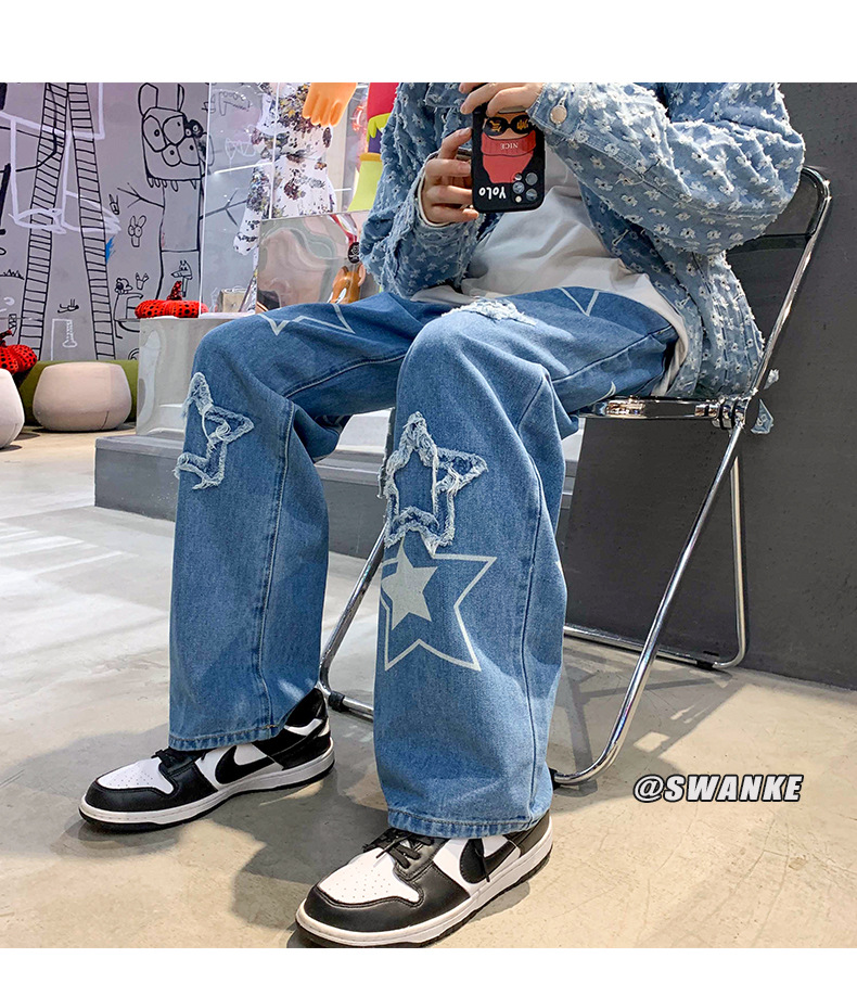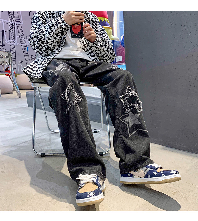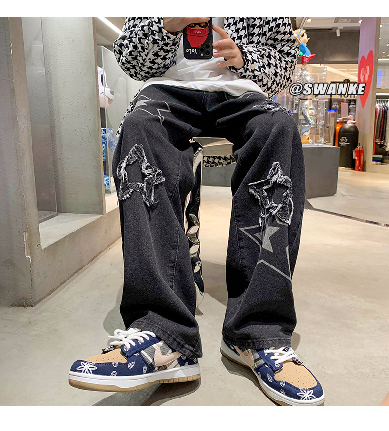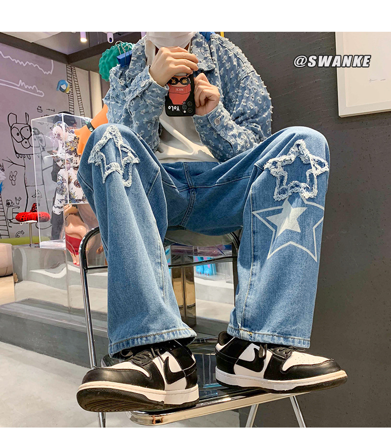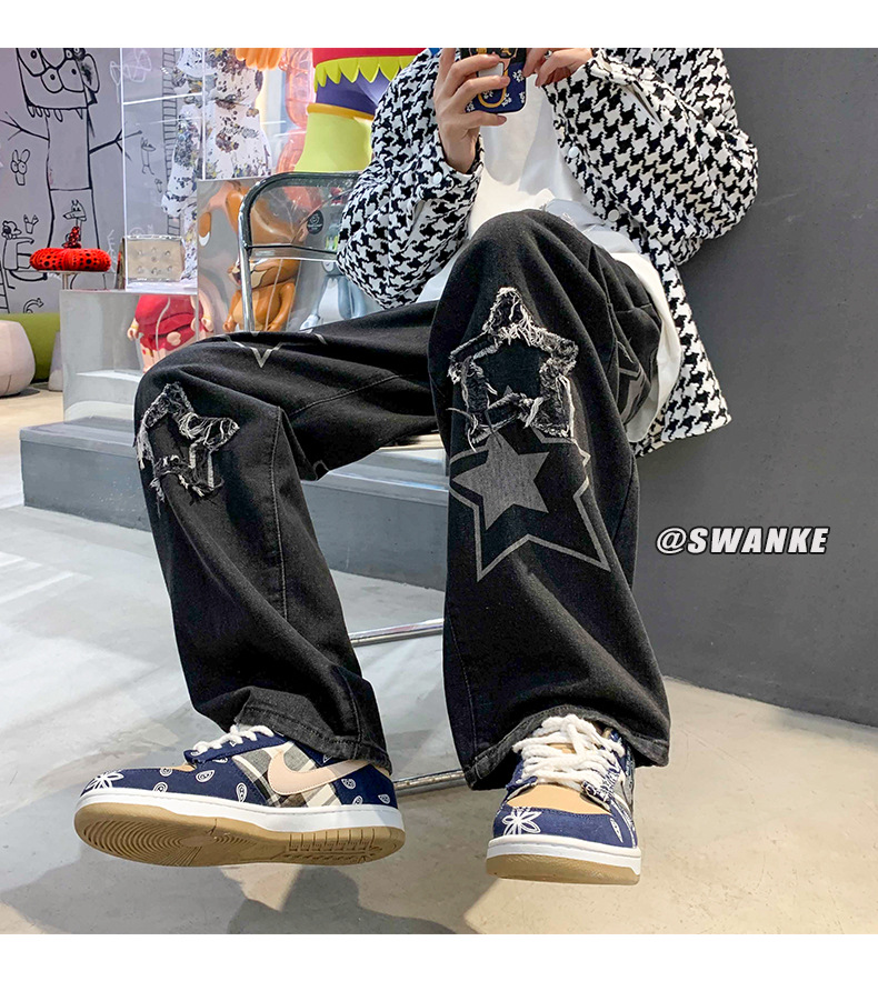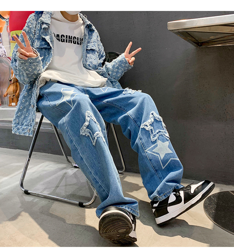 자수 청바지 남성용 봄 in 하이 스트리트 느슨한 디자인 센스 아빠 바지 봄과 가을 트렌디 브랜드 스트레이트 레그 와이드 레그 팬츠스토어 가기