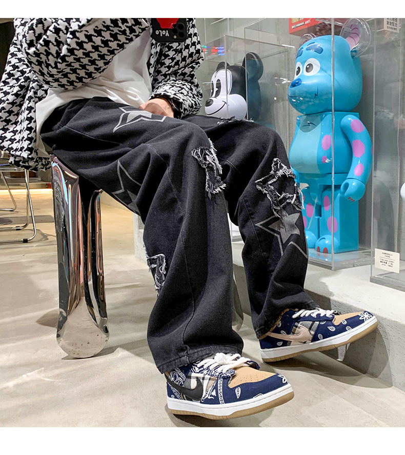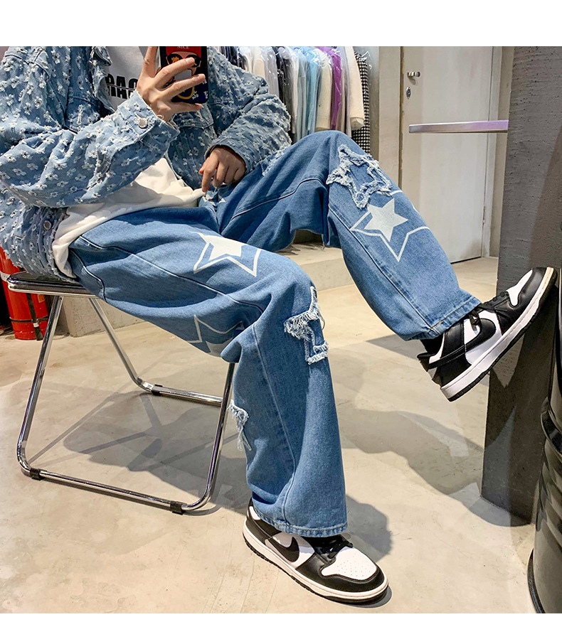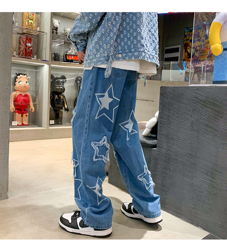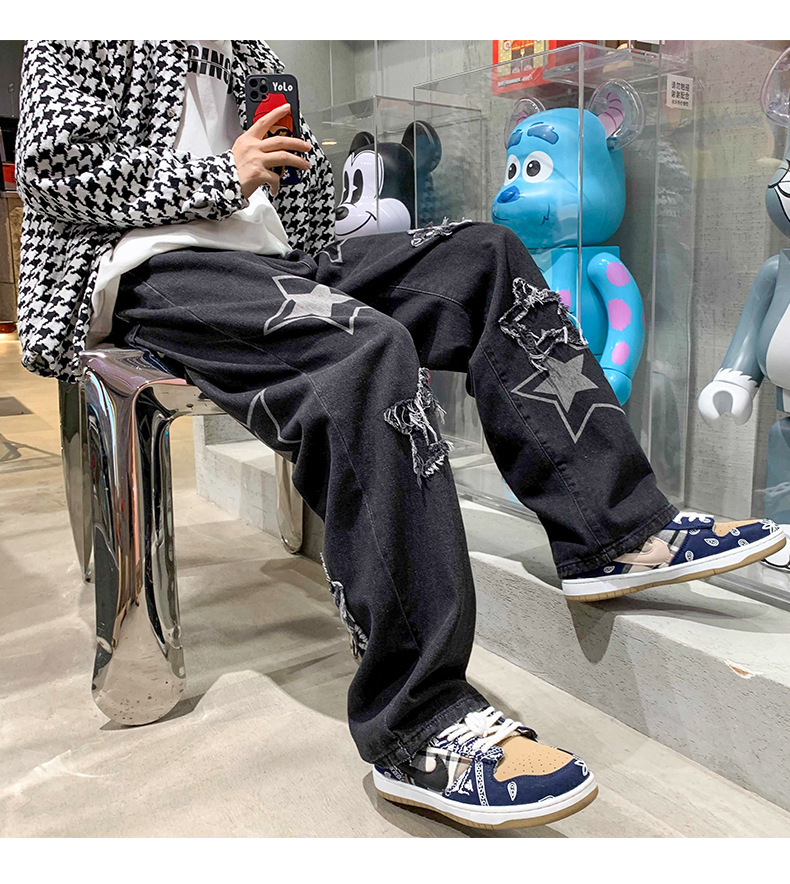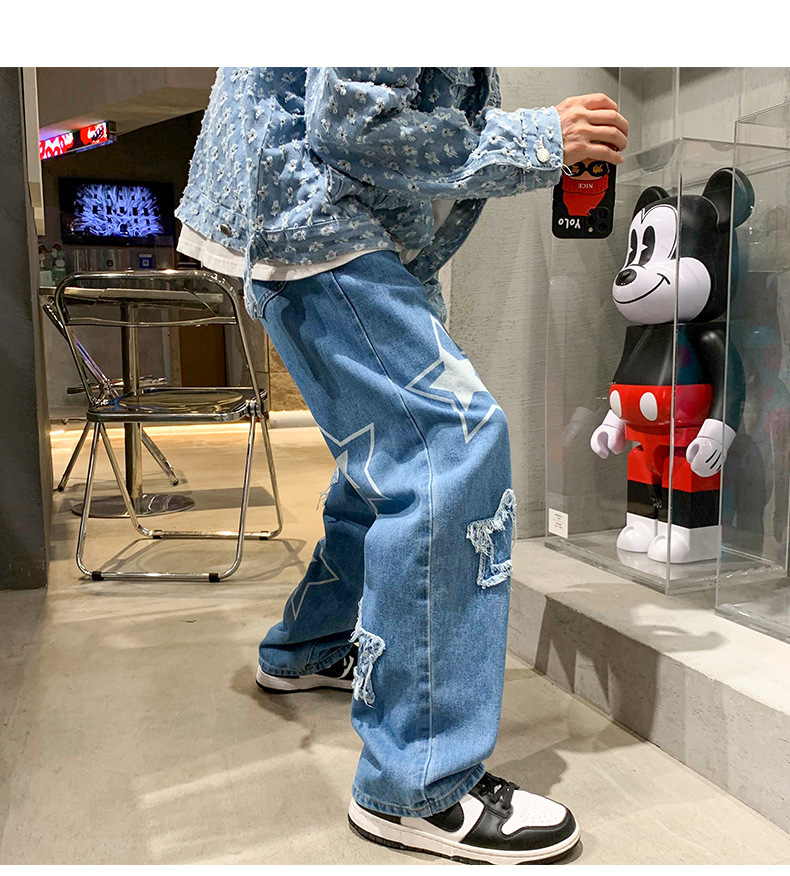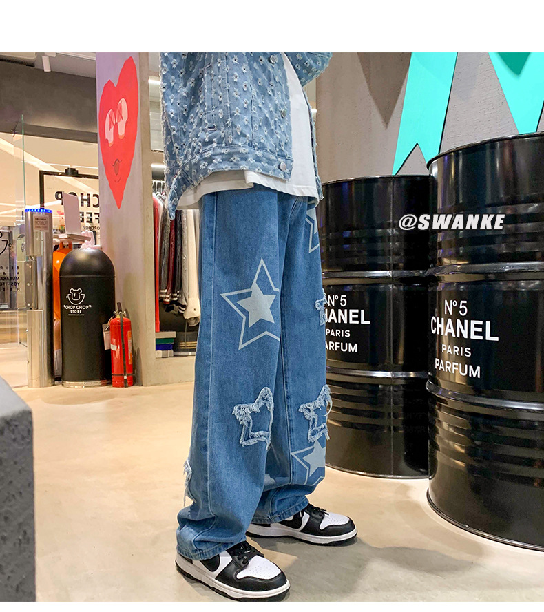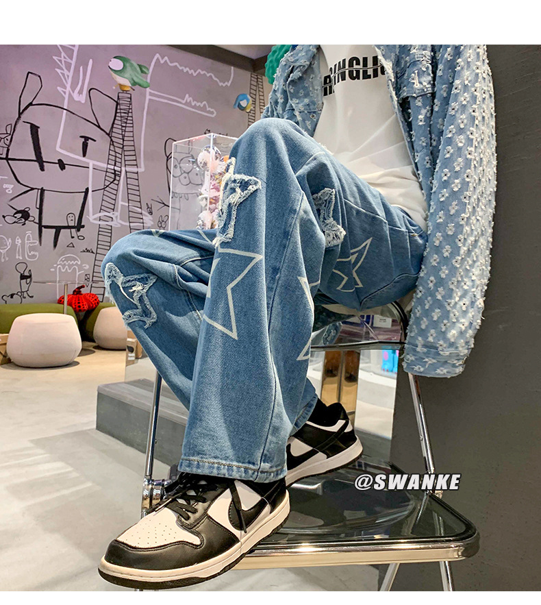 자수 청바지 남성용 봄 in 하이 스트리트 느슨한 디자인 센스 아빠 바지 봄과 가을 트렌디 브랜드 스트레이트 레그 와이드 레그 팬츠스토어 가기