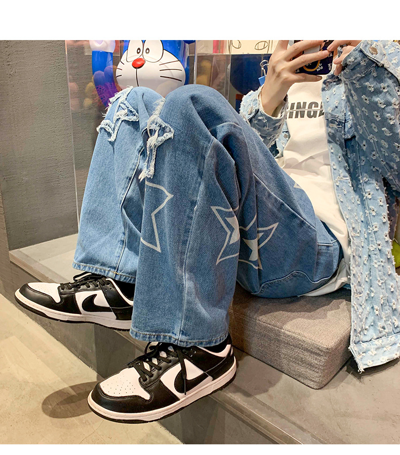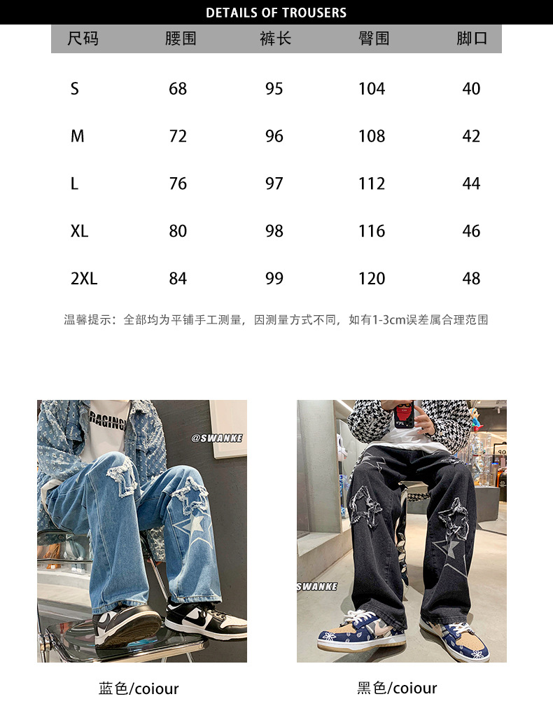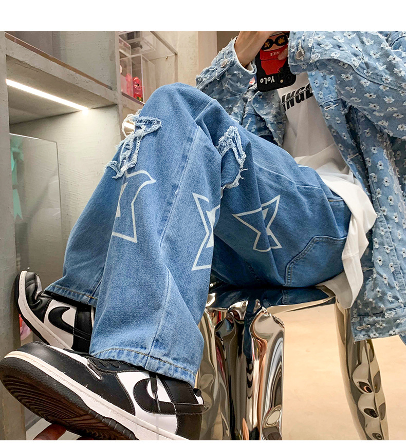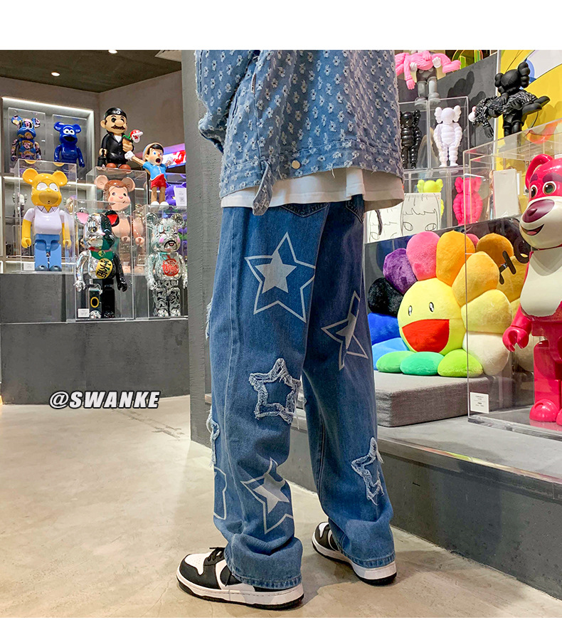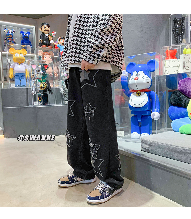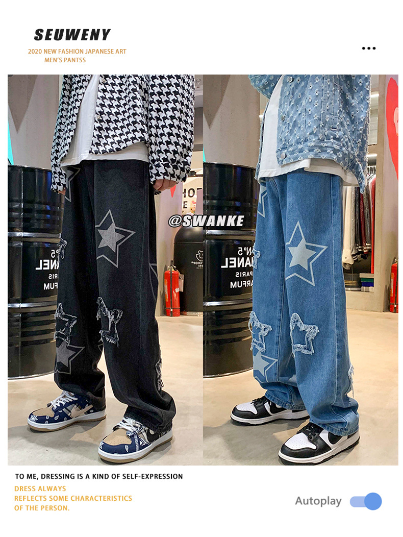 자수 청바지 남성용 봄 in 하이 스트리트 느슨한 디자인 센스 아빠 바지 봄과 가을 트렌디 브랜드 스트레이트 레그 와이드 레그 팬츠스토어 가기